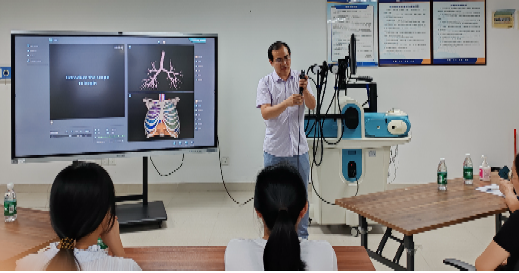 本次培训由海南医学院第一附属医院呼吸内科钟有清老师进行授课。凭借其深厚的专业知识与丰富的临床经验,深入浅出地讲解了纤维支气管镜的构造原理、适应证、禁忌证以及操作流程中的关键要点。理论讲解过程中穿插大量实际病例,让抽象知识变得生动易懂。