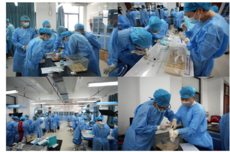 培训现场,四位指导老师分组巡回指导,针对学员操作细节即时纠错。参训学员表示:“指导老师们手把手教学,解决了以往‘理论懂、上手难’的困境,尤其是腹腔注射的进针角度和剂量控制,收获极大。”