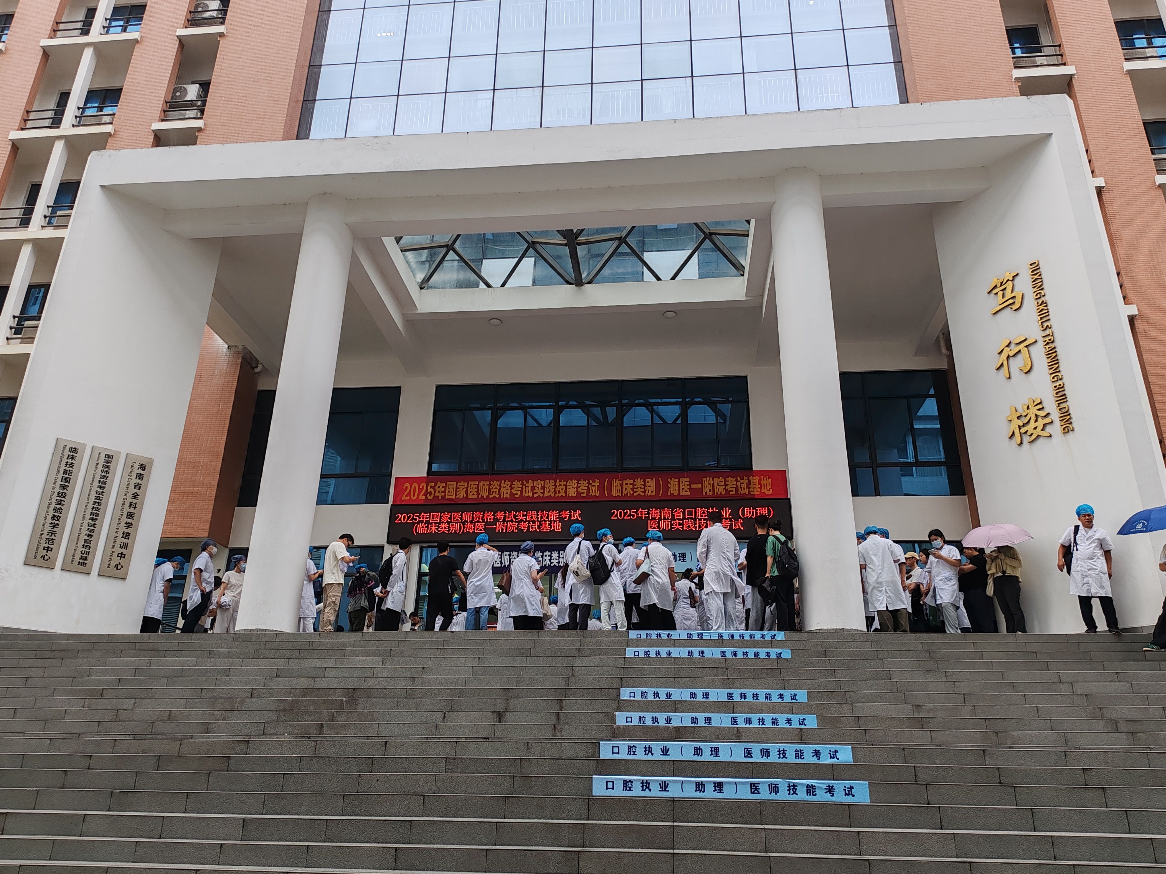 考试过程中,第一附属医院与附属海南医院分别承担临床执业医师和口腔执业(助理)医师的考核任务,通过物理分隔考场区域、设置独立考站及隔音设施,结合分时段、分批次错峰入场机制,最终保障近2000名考生依序完成技能考核,全流程平稳有序。