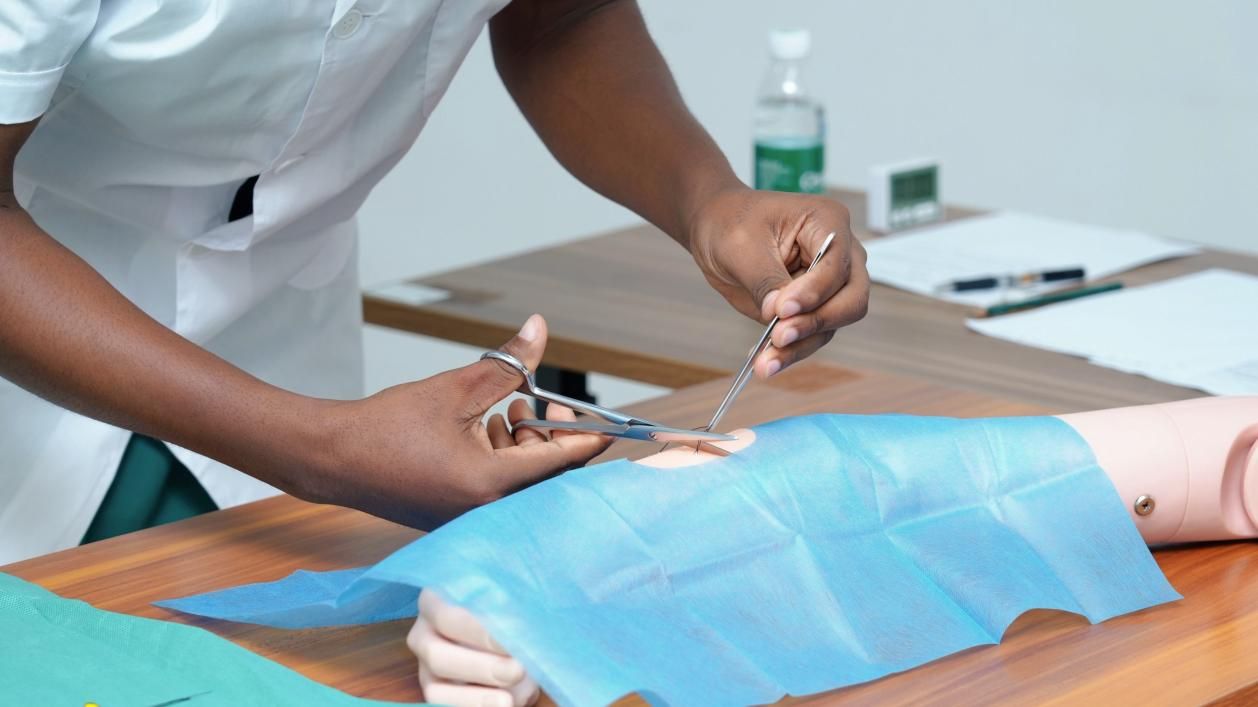 决赛采用赛道式比赛模式,模拟真实急症情境:参赛队伍需接诊一名腹部钝击伤患者,并完成静脉采血、穿刺等关键操作,为紧急手术做好准备。比赛重点考察选手在紧急情况下的临床判断、标准化操作、无菌观念、团队协作及人文关怀能力。