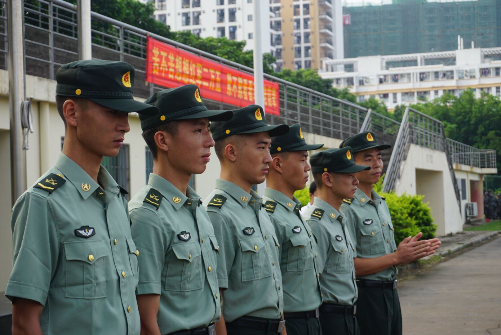 在教官的口令中