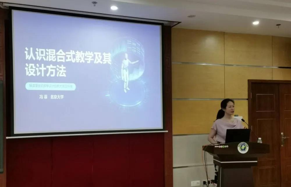 冯菲,北京大学教师教学发展中心培训师,致力于高校创新教学法以及技术支持下的教学法的研究与实践推广,编著有《混合式教学成功手册-让课程快速上网》。专家冯菲在进行混合式教学方式方法讲解和指导。