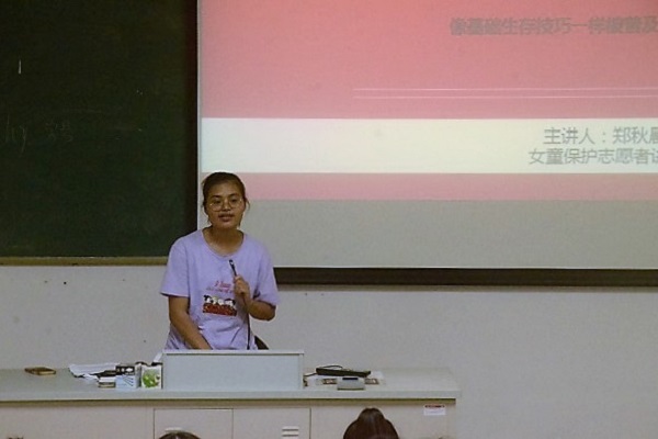 本次讲授旨在提高志愿者们对待女童自我保护意识的重视和"女童保护"活动服务质量,打造具有特色的女童保护讲师团队,此次活动由郑秋晨讲师负责第一轮培训讲座的讲授。