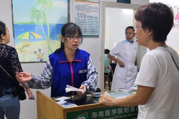 在经过严格的培训后,志愿者们了解了病人在医院看病时的流程以及挂号处、付款处、取药处等具体位置,掌握了病历卡的填写方式,清楚无人挂号机的使用方法,同时熟悉了医院的主要布局、各个科室的基本位置等。在活动中,志愿者们为有需求的病人指引所去科室的具体路径,帮助不会使用无人挂号机的患者挂号。志愿者们尽自己所能帮助患者,旨在缓解医院紧张混乱的氛围,为更多病人提供最快解决问题的途径,安抚病人们急切焦躁的情绪,在营造和谐温暖的医患关系起到了很好的促进作用。