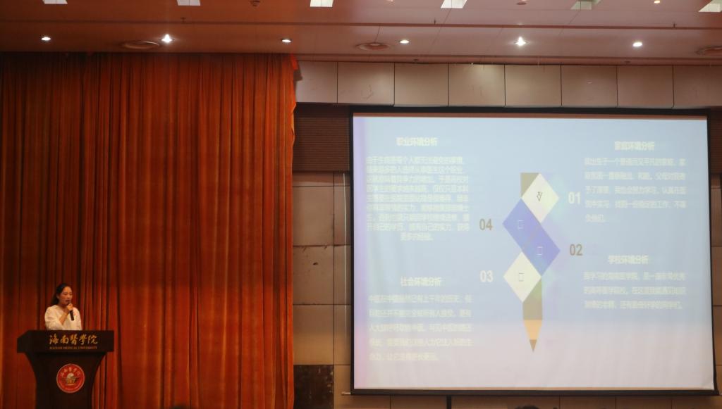 5月12日上午9:30,海南医学院第二届暨第一临床学院第六届生涯规划大赛在国际报告厅举行。担任此次比赛的评委分别是海南师范大学招生就业处雷小明老师、海南省第五人民医院院办徐博譞老师、海南医学院药学院刘颖副教授、海南医学院中医学院唐晓亮教授以及海南大学马克思主义学院温小平副教授。到场的嘉宾有海南医学院招生与就业指导出黄跃林副处长、海南医学院第一临床学院张万科副书记、海南医学院急诊创伤学院王晖慧副书记及海南医学院生涯规划与就业指导教研室的全体老师。