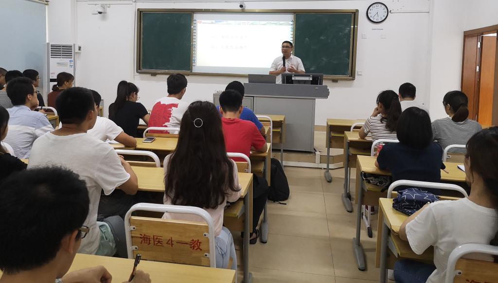 5月22日下午,第一临床学院党委“不忘初心,牢记使命,争当有情怀的红色卓越医学生”2019年5月发展对象主题党课在第四教学楼102教室举行。此次党课由党员之家指导老师陈茜茜主持,由第一临床学院党委副书记张万科主讲,52名入党发展对象参与聆听。