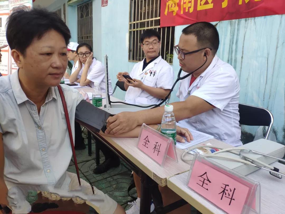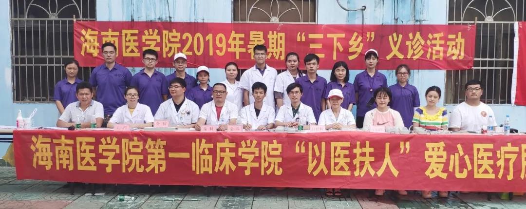“以医扶人”爱心医疗服务团队由海南医学院第一附属医院内分泌科陈竑主任医师、全科曾望远副主任医师、口腔科罗文副主任医师、关节创伤外科王子振彪医生、全科黄万里医生,带队老师宋融、刘京京、焦江博及15名医学生志愿者组成。
