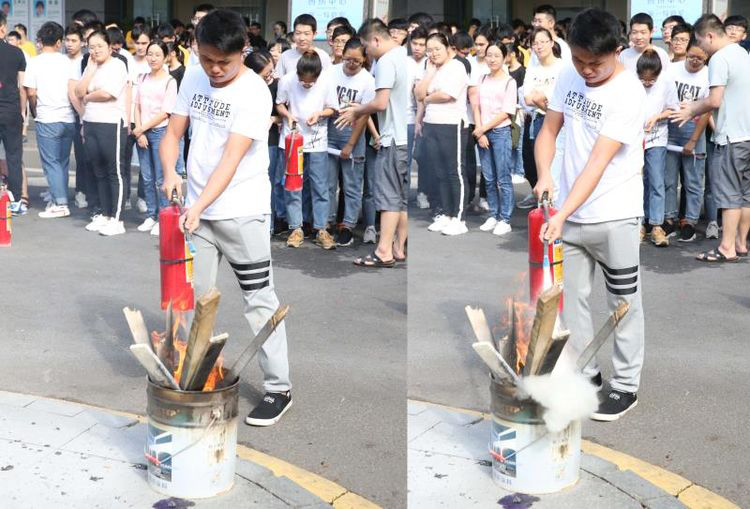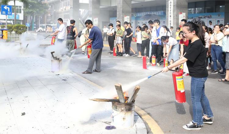 当日下午,消防安全实战演练在我院外科楼前举行。演练开始前,培训教师详细讲解第一时间及时灭火的重要性,并通过示范讲解了灭火器的正确操作“提、拉、握、压、喷”等步骤要领,进行认真讲解和指导,使参训人员都能熟练掌握使用要领和方法。然后组织学生有序上前拿起灭火器到“火灾现场”亲身体验灭火过程。通过实操进一步提高灭火技能。