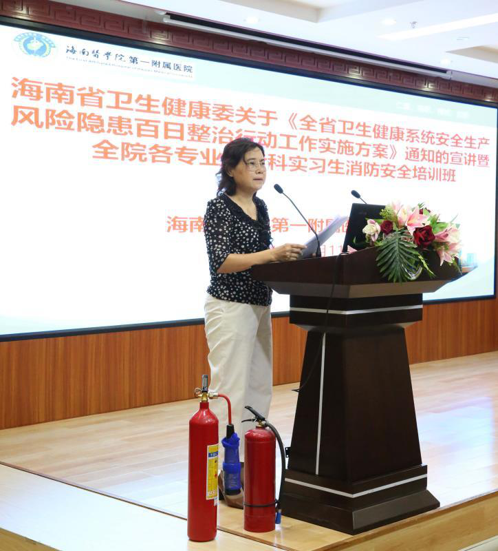 根据海南省卫生健康委关于《全省卫生健康系统安全生产风险隐患百日整治行动工作实施方案》(以下简称“方案”)通知精神,为增强我院全体学生的消防安全意识,以及应对火灾事故的救援处置能力,学会正确使用灭火器及逃生方法,2019年9月11日,海南医学院第一附属医院教学实践科邀请安全保卫部给在院实习生及2016级临床一体化卓越医师一附院班学生组织开展“消防安全培训及消防器材实操演练”。本次培训分上午消防知识培训、考试及下午的实战演练进行,共有300余名学生分批次参加了此次培训。