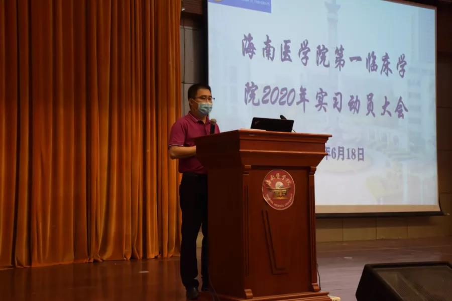 为加强实习管理,提高实习质量和强化学生实习自律意识,2020年6月18日上午8:30,海南医学院第一临床学院2020年实习动员大会在国际报告厅召开。第一临床学院党委冯琼书记、张万科副书记、李其富副院长、姚晨姣副院长、教学办李书卫主任以及各相关专业负责人、班主任、带班辅导员和429名实习生参加了此次会议。