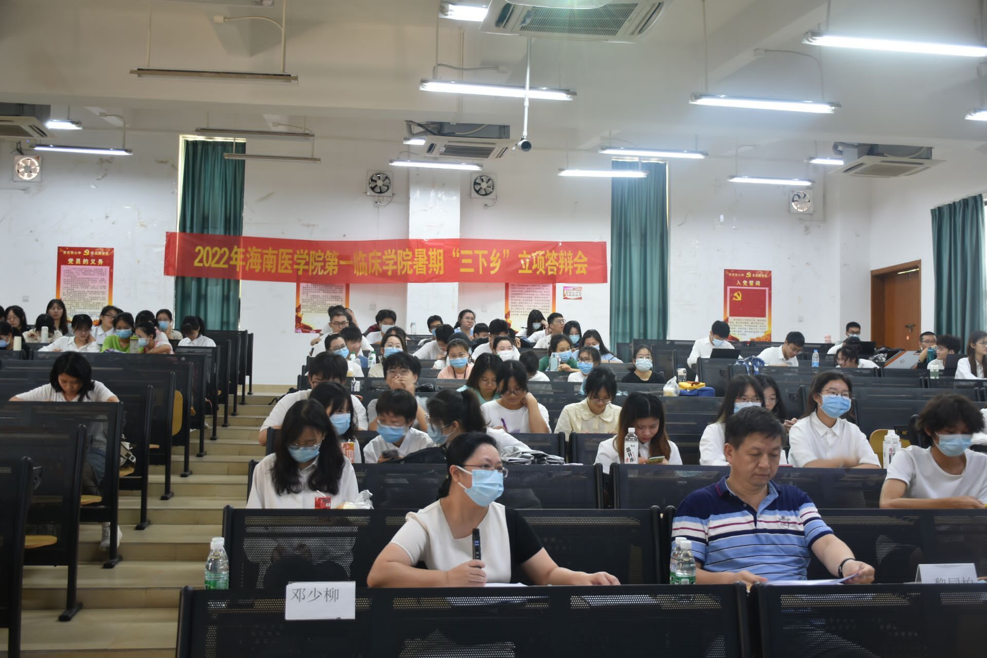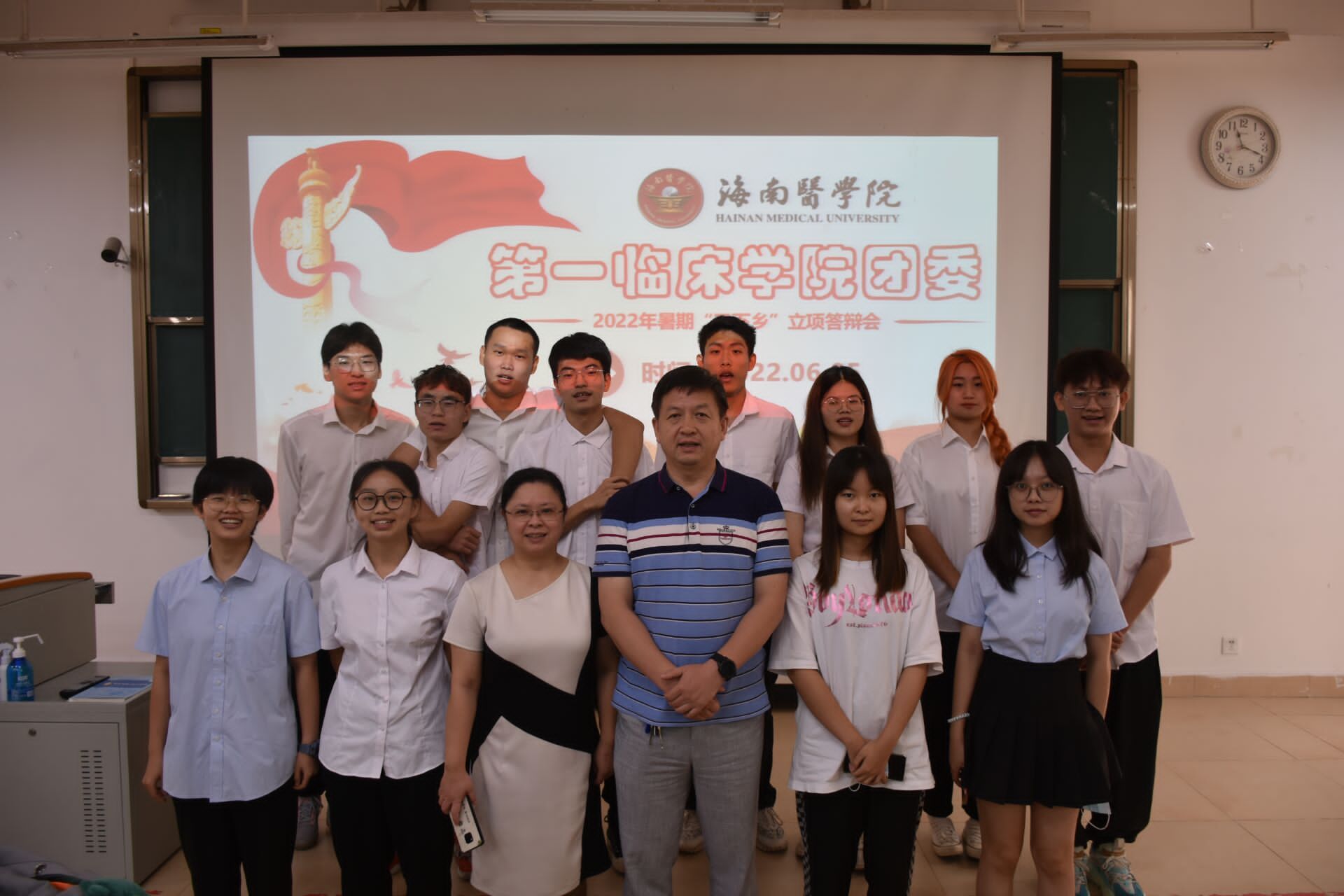 2022年6月5日,共青团海南医学院第一临床学院委员会青年发展部举办暑期“三下乡”项目答辩分享会,马克思主义学院副书记黎同柏老师和邓少柳老师受邀担任本次答辩分享会的评委,14个项目组代表同学依次进行项目的汇报和答辩,从实践内容、实践成果、实践方式和实践预期等方面,进行了全面的总结和展示。