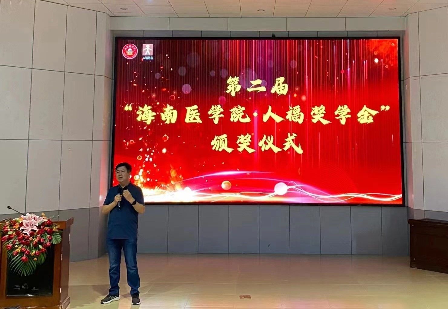 2023年5月24日上午,海南医学院第一临床学院麻醉学专业在海南医学院多功能报告厅隆重举办第二届“海南医学院·人福奖学金”颁奖典礼。