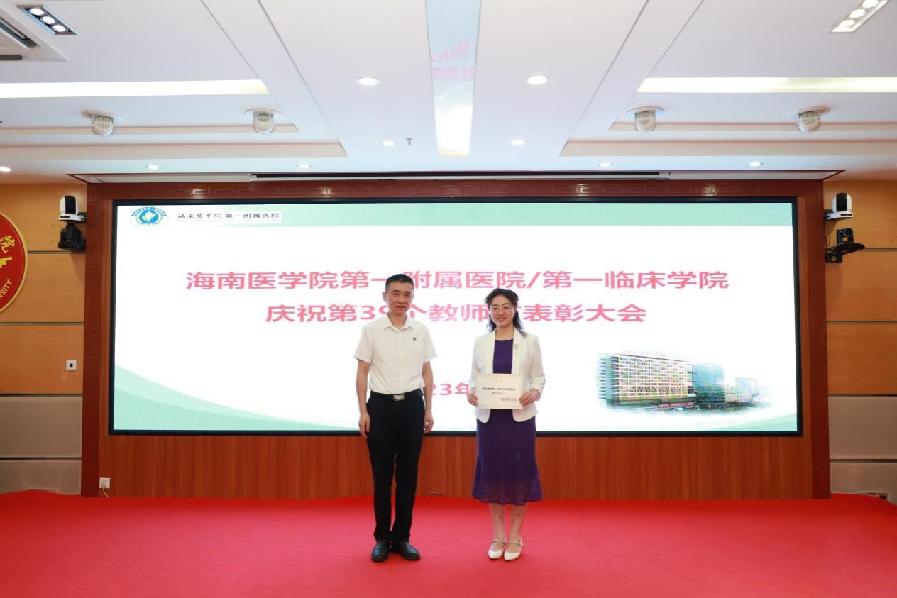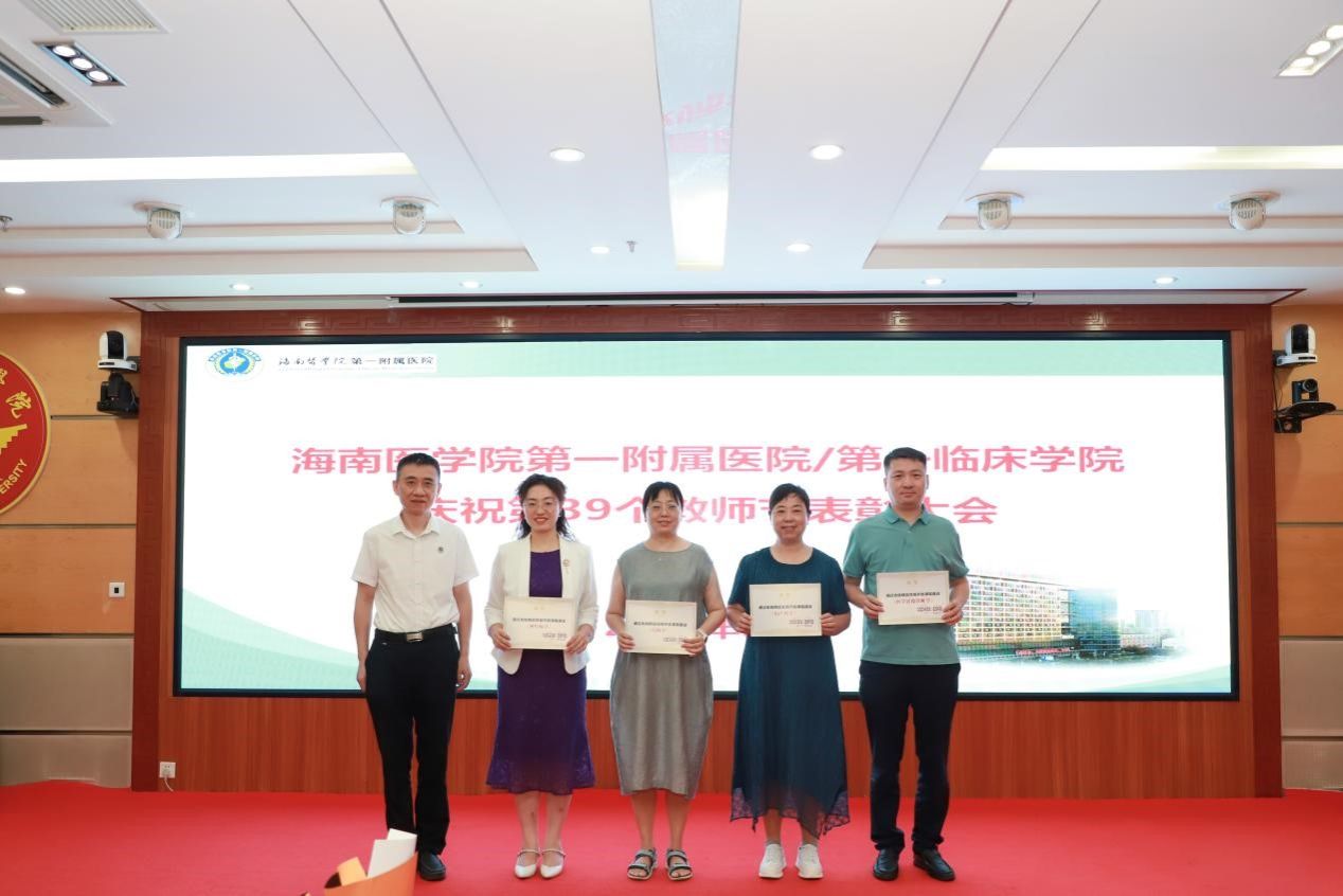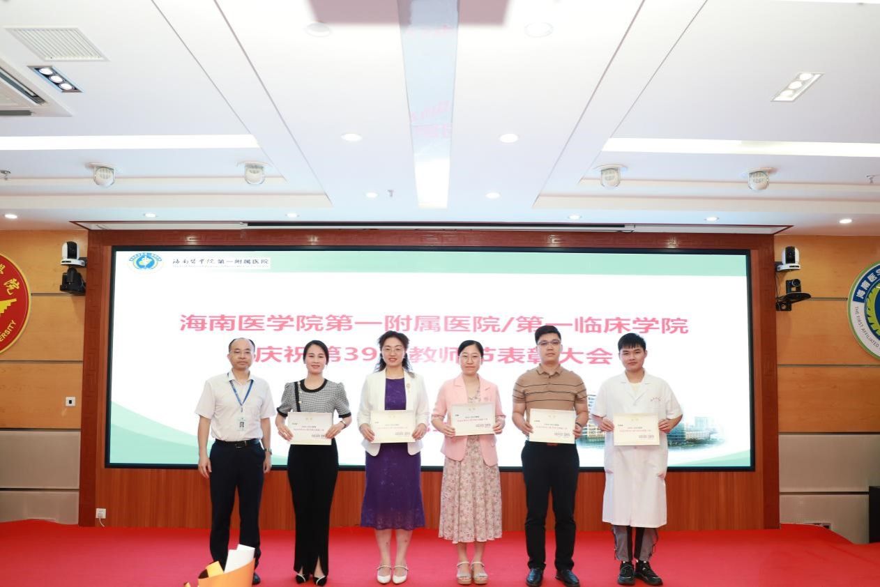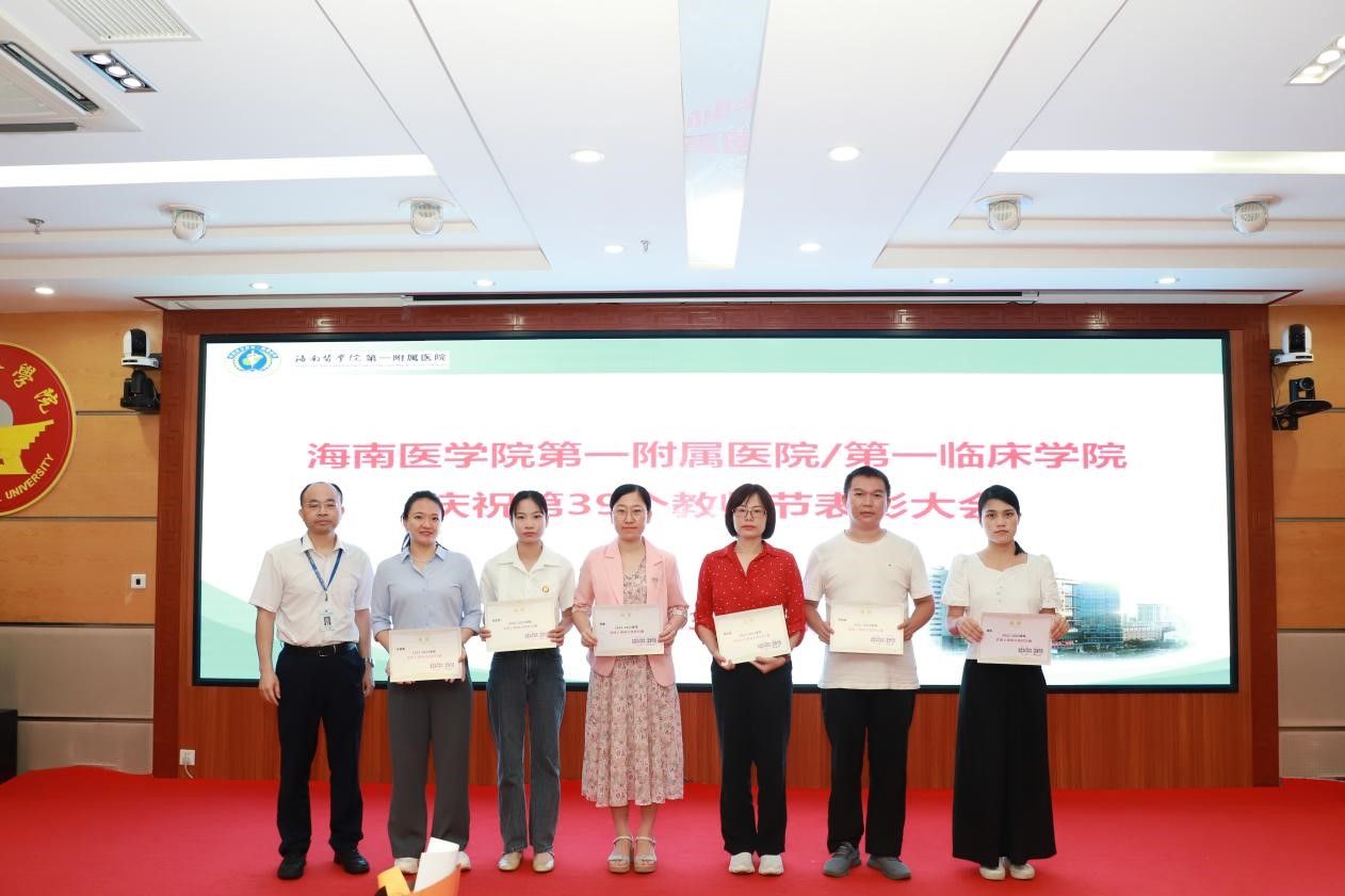 在第39个教师节来临之际,为弘扬尊师重教传统,9月8日上午,我院召开教师节表彰大会,总结过去一年教育工作成绩,表彰为医院教育工作作出突出贡献的科室和个人,激励全院教职工坚守立德树人初心,潜心躬耕教坛,为海南临床医学教育事业贡献力量。