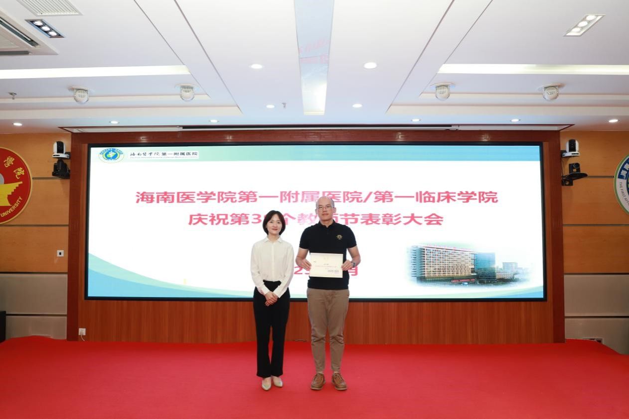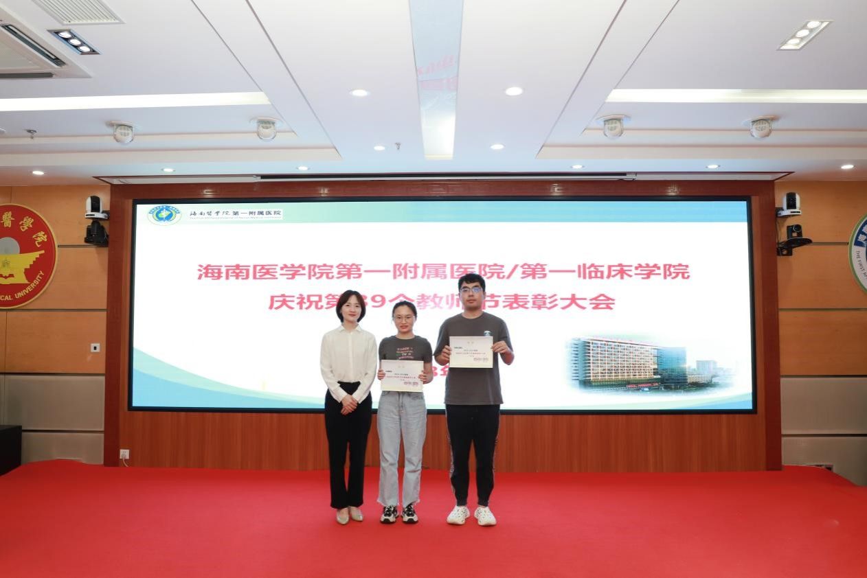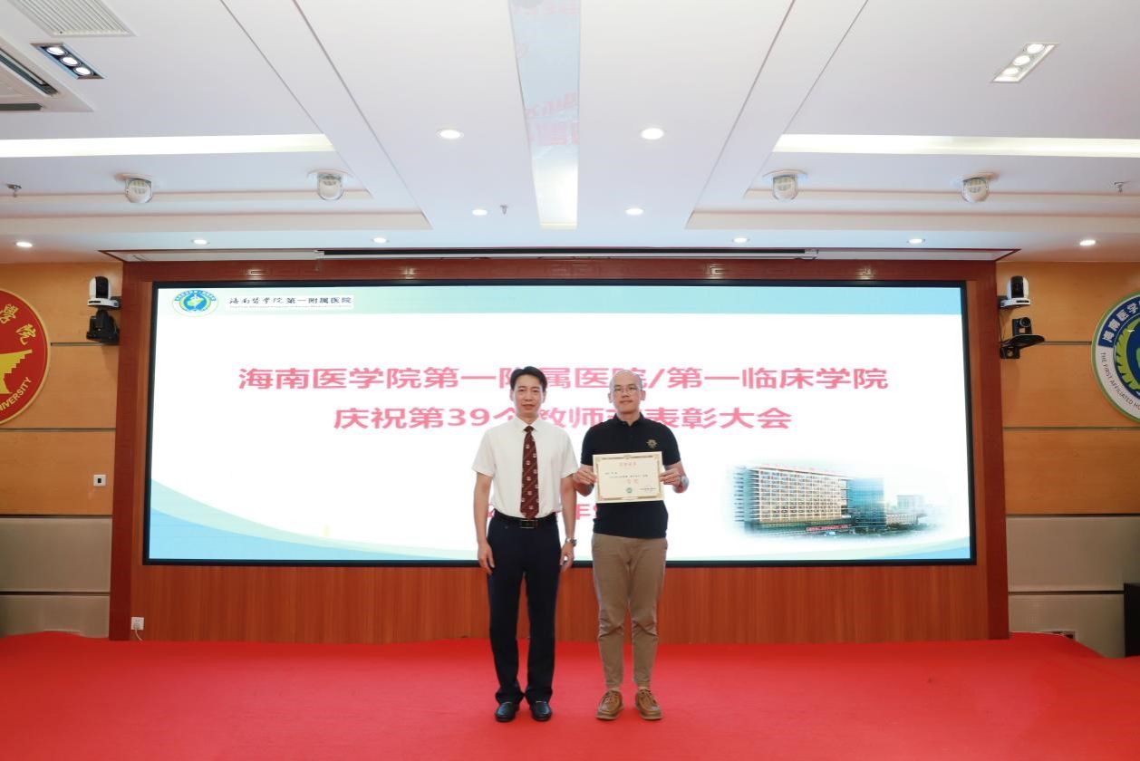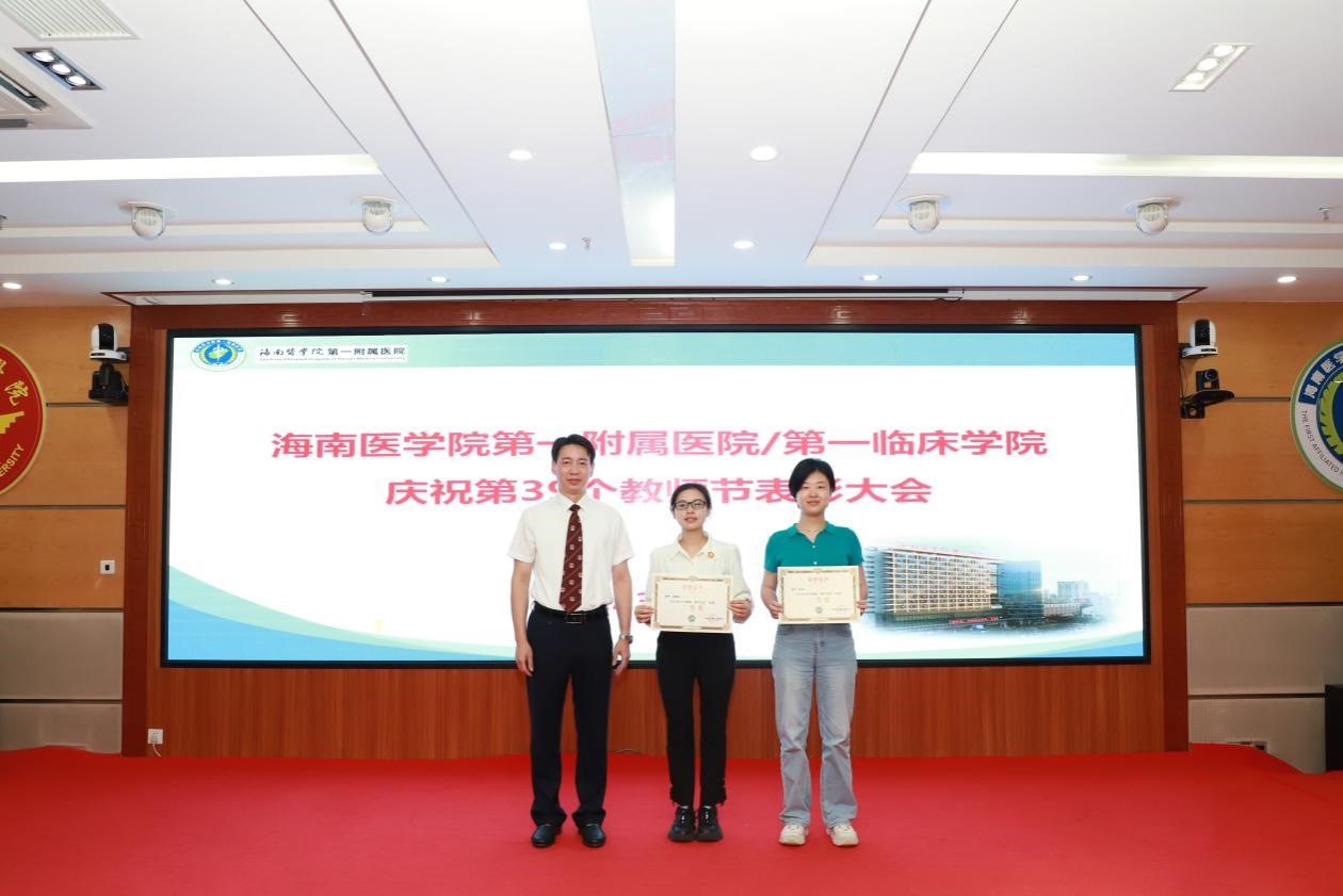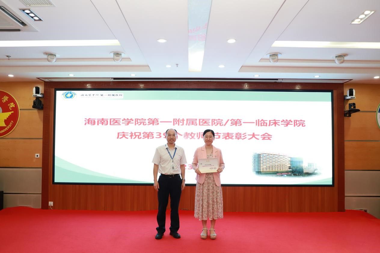 在第39个教师节来临之际,为弘扬尊师重教传统,9月8日上午,我院召开教师节表彰大会,总结过去一年教育工作成绩,表彰为医院教育工作作出突出贡献的科室和个人,激励全院教职工坚守立德树人初心,潜心躬耕教坛,为海南临床医学教育事业贡献力量。