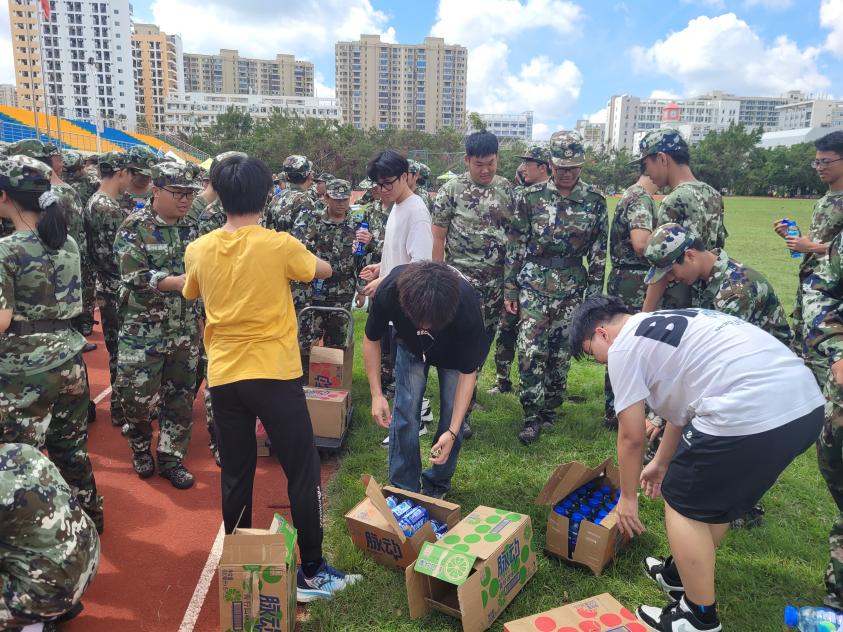 随着军训指令的下达,新生们以整齐划一的动作迅速排好列队,老师和学长学姐们拿着一箱箱饮料穿梭在队列之间,为汗流浃背的新生们递上饮料,新生们脸上露出了感激的笑容。这些看起来微不足道的举动,却让军训的疲惫瞬间消散大半。“哇噻谢谢你!”饱含了新生们对本次送清凉活动的肯定,也是对学长学姐们辛苦的慰藉。