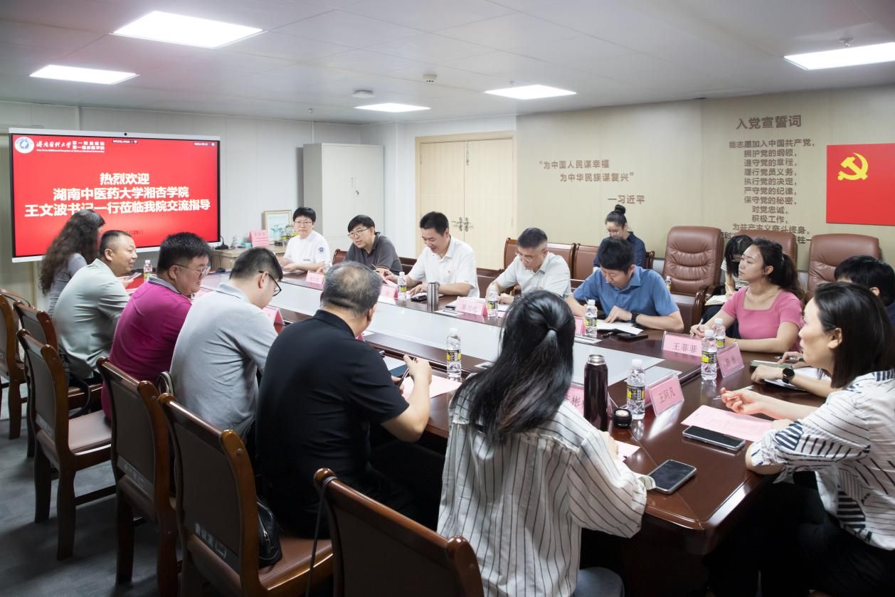 2025年4月29日上午,湖南中医药大学湘杏学院党委书记王文波一行来到我院开展交流座谈,共同推动医学教育与医疗事业的发展。我院党委书记徐剑、党委副书记陈用成及相关职能部门负责人热情接待了来访一行。