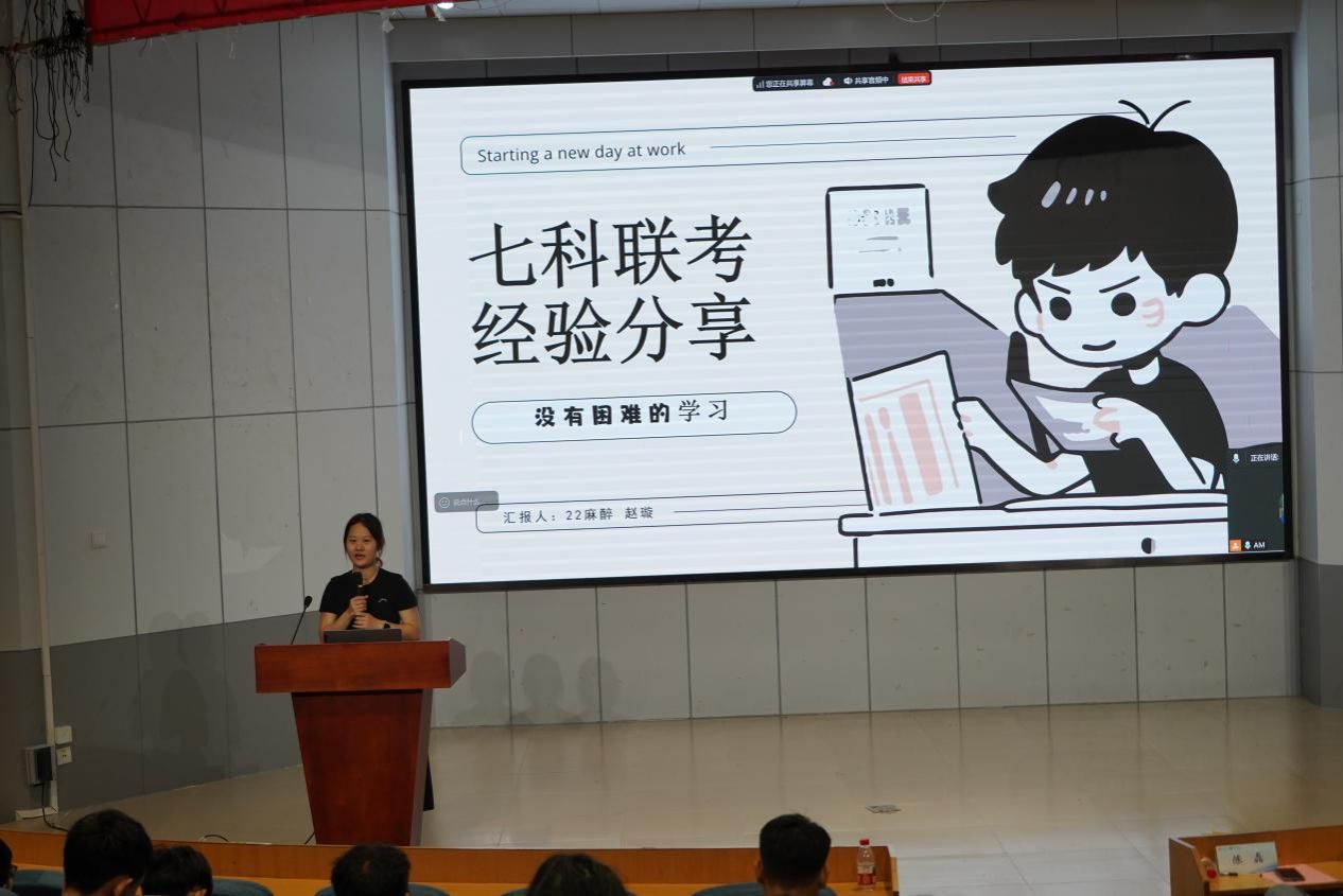 在经验交流环节,四位优秀学生代表——22 临本1班李挺葳、22麻醉赵璇、22精神医学蔡学源、22临本6班樊思怡纷纷走上讲台,结合自身丰富的学习实践,毫无保留地分享专业基础综合测试备考经验。他们从时间管理、知识体系构建、复习方法优化等多个维度展开精彩分享,内容丰富且实用,涵盖了如何制定科学的备考计划、如何高效整合多学科知识、如何应对考试焦虑等同学们普遍关心的实际问题。这些来自学习一线的实战经验,犹如一盏盏明灯,为同学们提供了极具参考价值的备考思路,助力大家在联考中取得优异成绩。