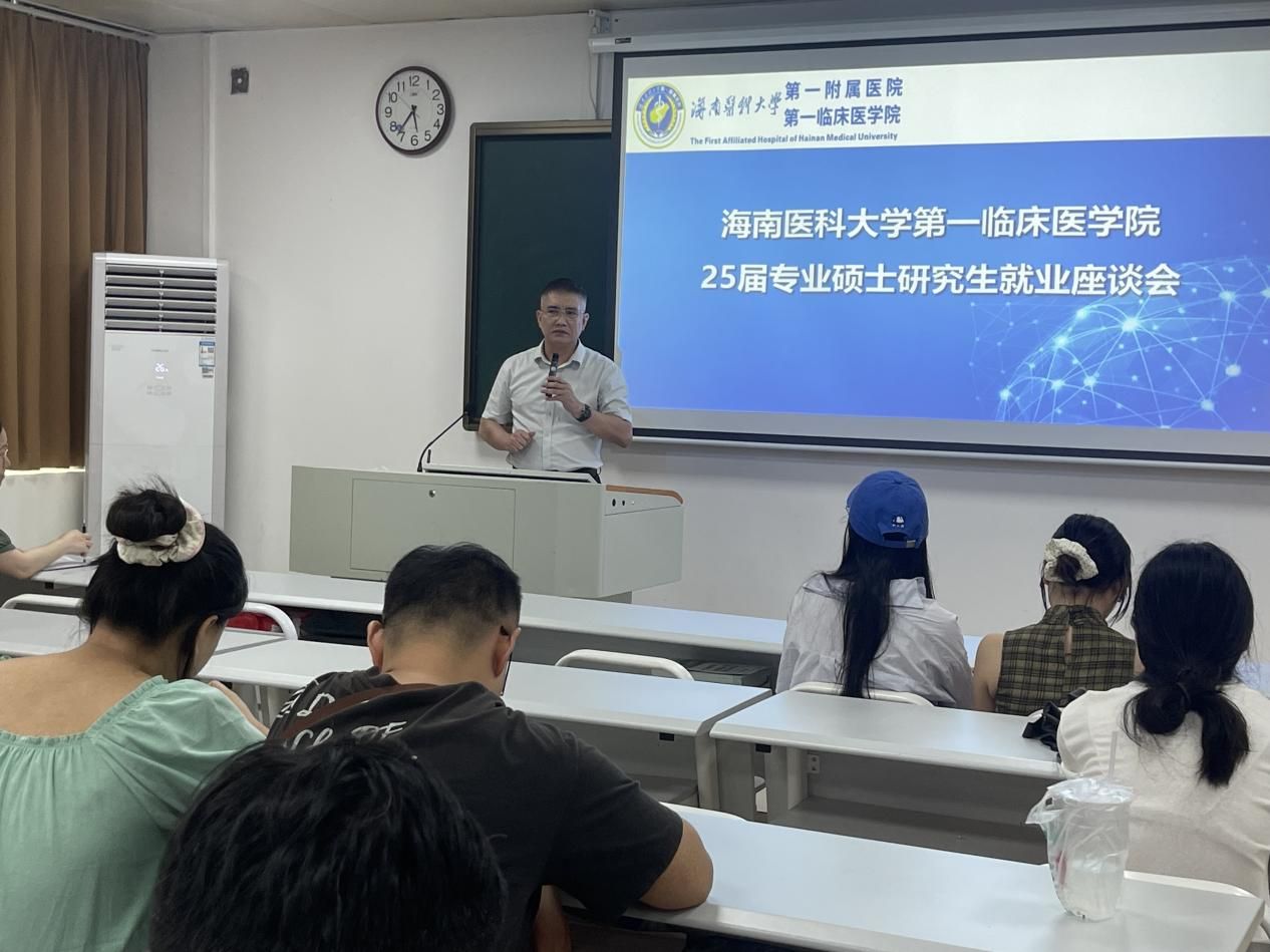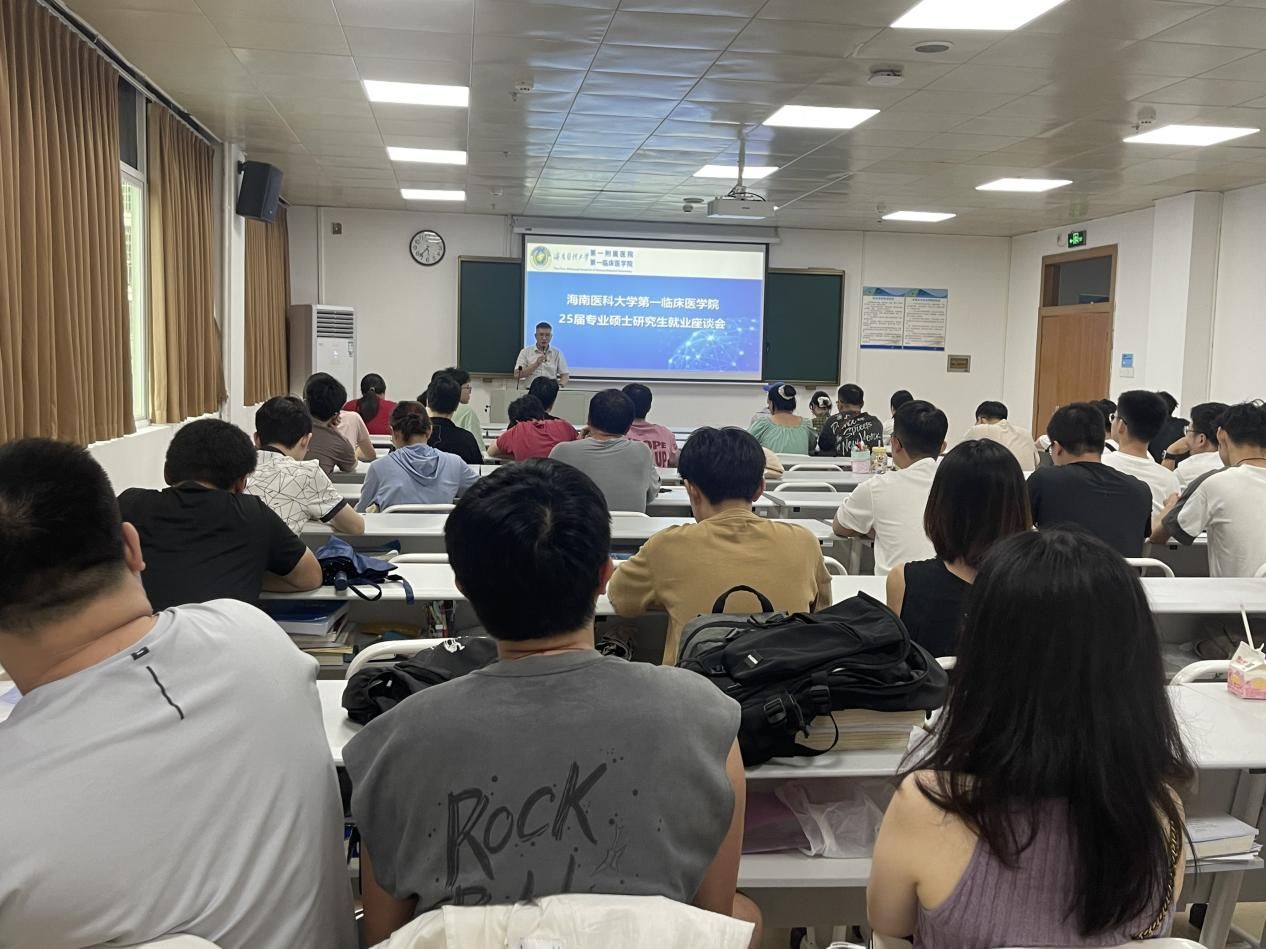拓宽视野,天地更宽: 学院党委副书记陈用成老师深入分析了当前就业形势。他指出,部分市县医院存在人才需求缺口,鼓励同学们“眼光放长远,脚步迈出去”,勇敢面向全国寻找机会,不要将求职范围仅局限在海口。