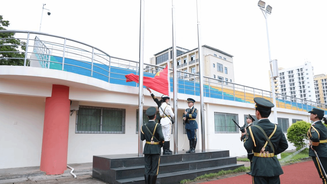 上午7时整,升旗仪式正式开始。全体师生身着整齐服装,精神抖擞列队,目光聚焦升旗台。伴随激昂的《义勇军进行曲》,五星红旗冉冉升起,师生们肃立行注目礼,高唱国歌,爱国情怀与青春使命感在现场激荡。