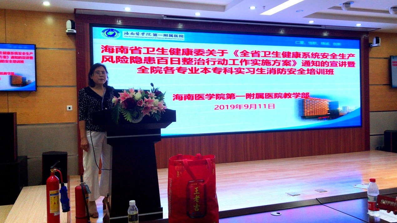 今后,海南医学院第一附属医院将不定期的对全体教职工及学生进行消防知识培训及演练,力争把火灾消灭在萌芽状态,确保师生和国家财产的安全。