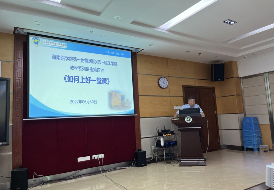 6月30日下午,海南医学院第一附属医院(第一临床学院)教学系列讲座在综合住院楼三楼7号会议室举办,邀请海南医学院教务处牛莉娜教授作讲座,首席教学顾问何琪懿同志作主持。第一临床学院教研室主任、临床科室教学主任、青年教师、教学督导专家、教务科全体人员、全科医学与继续教育学院青年教师、急诊创伤学院青年教师参加讲座。