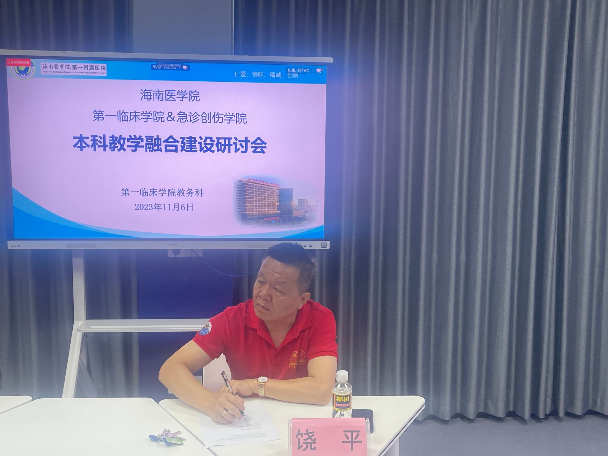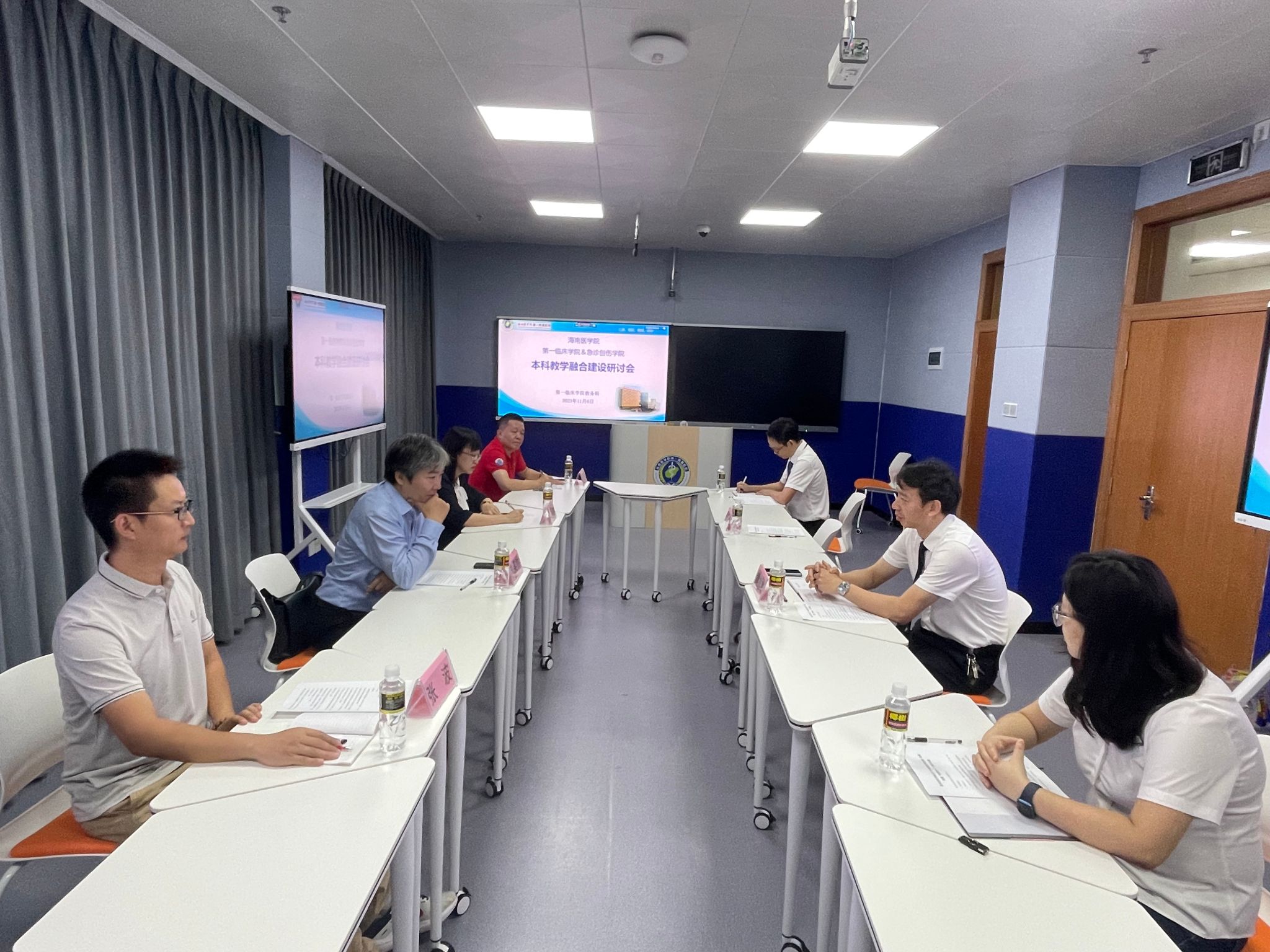 2023年11月6日上午,第一临床学院和急诊创伤学院在临床技能实验教学中心402教室开展本科教学融合建设研讨会。受第一临床学院及急诊创伤学院党委顾硕书记的委托,会议由第一临床学院黄雄高副院长主持,参会人员有第一临床学院教务科副科长(主持工作)乔娜、副科长林明松、副科长蔡海云和副科长魏辛南,急诊创伤学院院长刘笑然、副书记朱敏、教研办副主任张波和急诊科副主任饶平。
