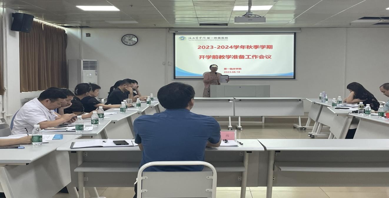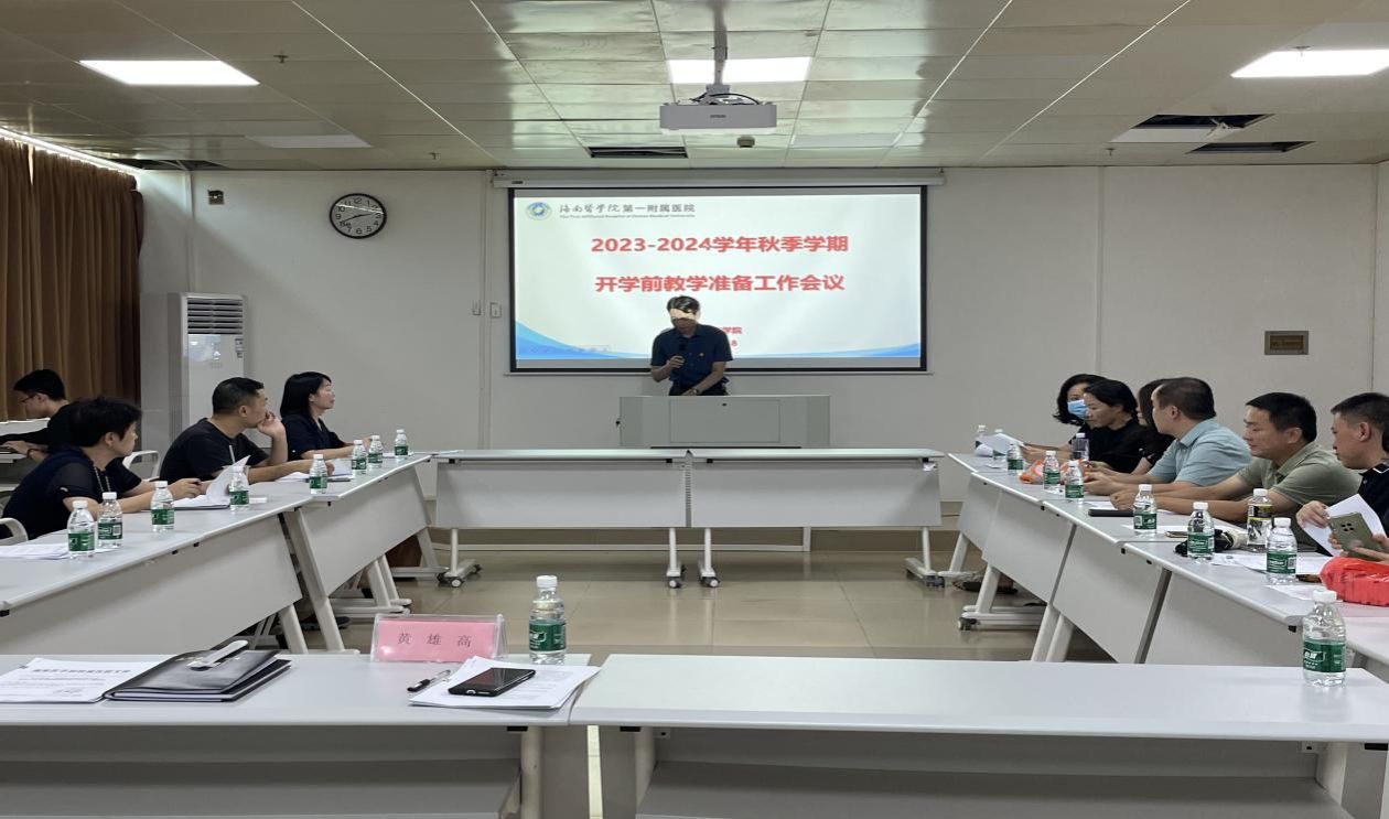 为确保2023-2024学年秋季学期教学工作的顺利开展,由教务科组织的海南医学院第一临床学院开学前准备工作会议于8月18日下午在技能中心405教室召开,会议由黄雄高副院长主持,参会人员有各教研室主任、副主任、教学秘书和教务科全体成员。