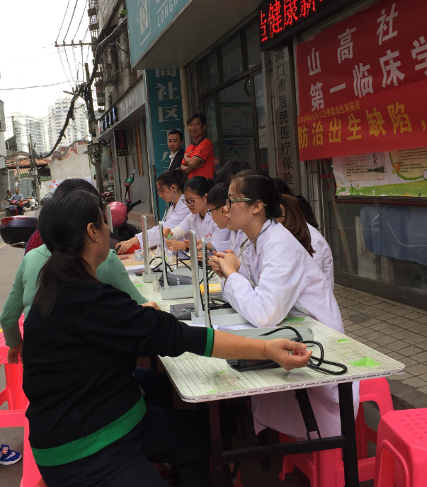 为了更好地将支部建设与基层服务相结合,打造全科医学生的支部特色,2018年11月23日上午8点至中午12点,海南医学院第一临床学院党委第六党支部的学生党员与山高社区卫生服务站医务人员进行了联合义诊。