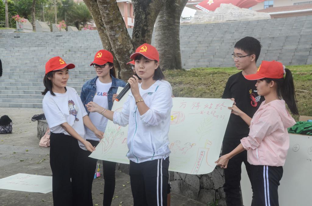 上午,抵达母瑞山纪念园后,我院党委师生党员面向冯白驹将军和王文明主席的铜像,对着党旗庄严宣誓。随后,在红色解说员王学广同志声情并茂、抑扬顿挫的讲解声中,师生党员们打开历史大门,了解了琼崖纵队在母瑞山的革命故事,知道了看似普通的“革命菜”背后的故事。82岁的老红军王学广动情述说:“当年的革命战士没地方住,睡密林里;衣服烂了,穿树叶树皮;头发长了,用砍刀砍短……就是在这么恶劣的环境中,冯白驹带着仅剩的战士度过了八个月,保存了革命火种……”讲台之下,一张张认真的脸上流露出对革命战士的敬佩。接着,在解说员的带领下,师生党员们参观了革命纪念馆,并重走了红军路,观看当时制造兵器的旧址等,进一步领会革命战士艰苦奋斗、百折不挠的伟大精神。