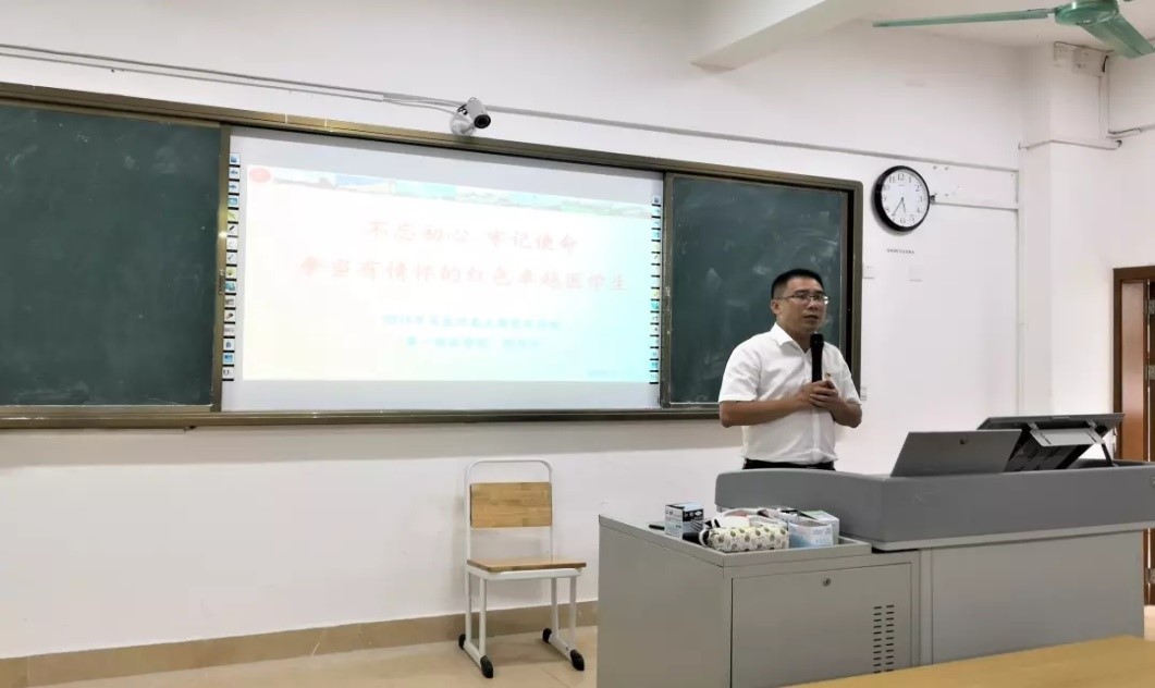 5月22日下午,第一临床学院党委“不忘初心,牢记使命,争当有情怀的红色卓越医学生”2019年5月发展对象主题党课在第四教学楼102教室举行。此次党课由党员之家指导老师陈茜茜主持,由第一临床学院党委副书记张万科主讲,52名入党发展对象参与聆听。