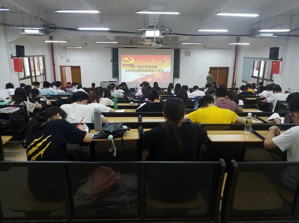 第一临床学院党委于4月8日、15日共组织两场党的知识考试,对131名积极分子的理论知识水平进行全面考察。本次考试采取闭卷的形式,内容涵盖习近平新时代中国特色社会主义思想、党的十九大精神、党章、入党誓词以及实际工作等。