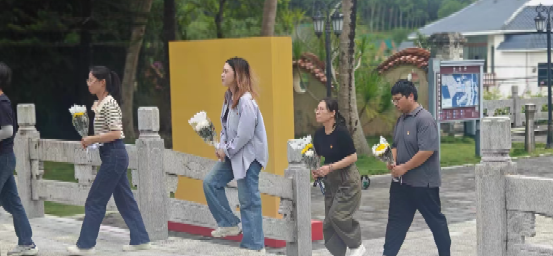 在母瑞山烈士纪念碑前,由老红军带领全体人员共同缅怀了革命先烈,强调了传承红色基因的重要性。随后,全体人员肃立,向革命先烈默哀致敬,并向革命烈士敬献鲜花,表达对革命烈士的纪念与敬重之情;最后,由学院教职工焦江博同志带领全体人员庄严地重温了入党誓词,誓言铿锵有力,响彻山谷。