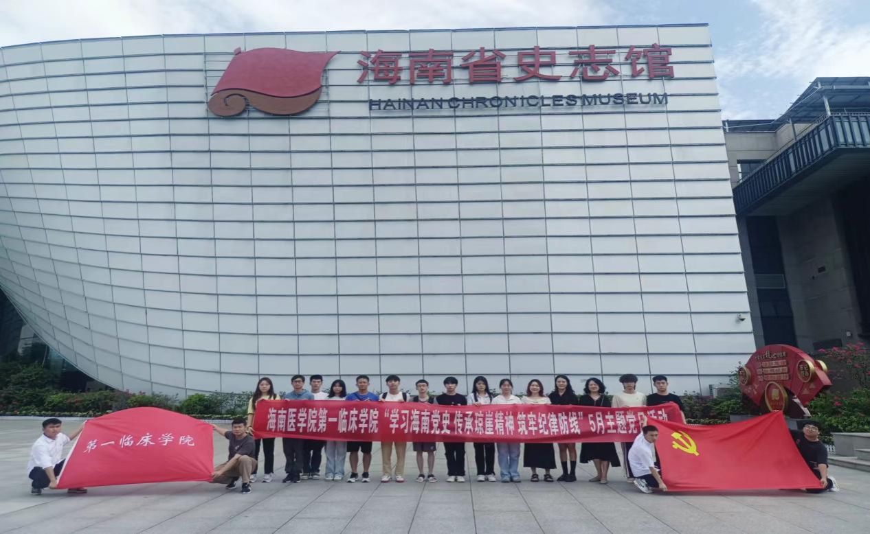 2024年5月24日,海南医学院第一临床学院组织学院党员及入党积极分子前往海南省史志馆,共同开展了一场别开生面的“学习海南党史 传承琼崖精神 筑牢纪律防线”主题党日活动。此次活动旨在通过学习海南党史,传承琼崖革命精神,进一步加强党员及入党积极分子的党性教育和纪律意识。