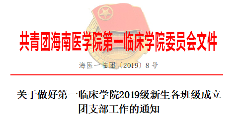 团支部是共青团开展工作和活动的基本单位,是团的最基层一级组织,它同广大团员青年有着最直接、最广泛的联系,是团的各项工作的显示终端。为了做好我院共青团的各级组织建设,健全团组织机构,使团的常规工作规范化、制度化,发挥团支部作用,加强对团员青年的思想政治教育,结合我院工作实际,第一临床学院团委研究决定,要求本院2019级各班新生班级在近期成立团支部,具体工作通知如下: