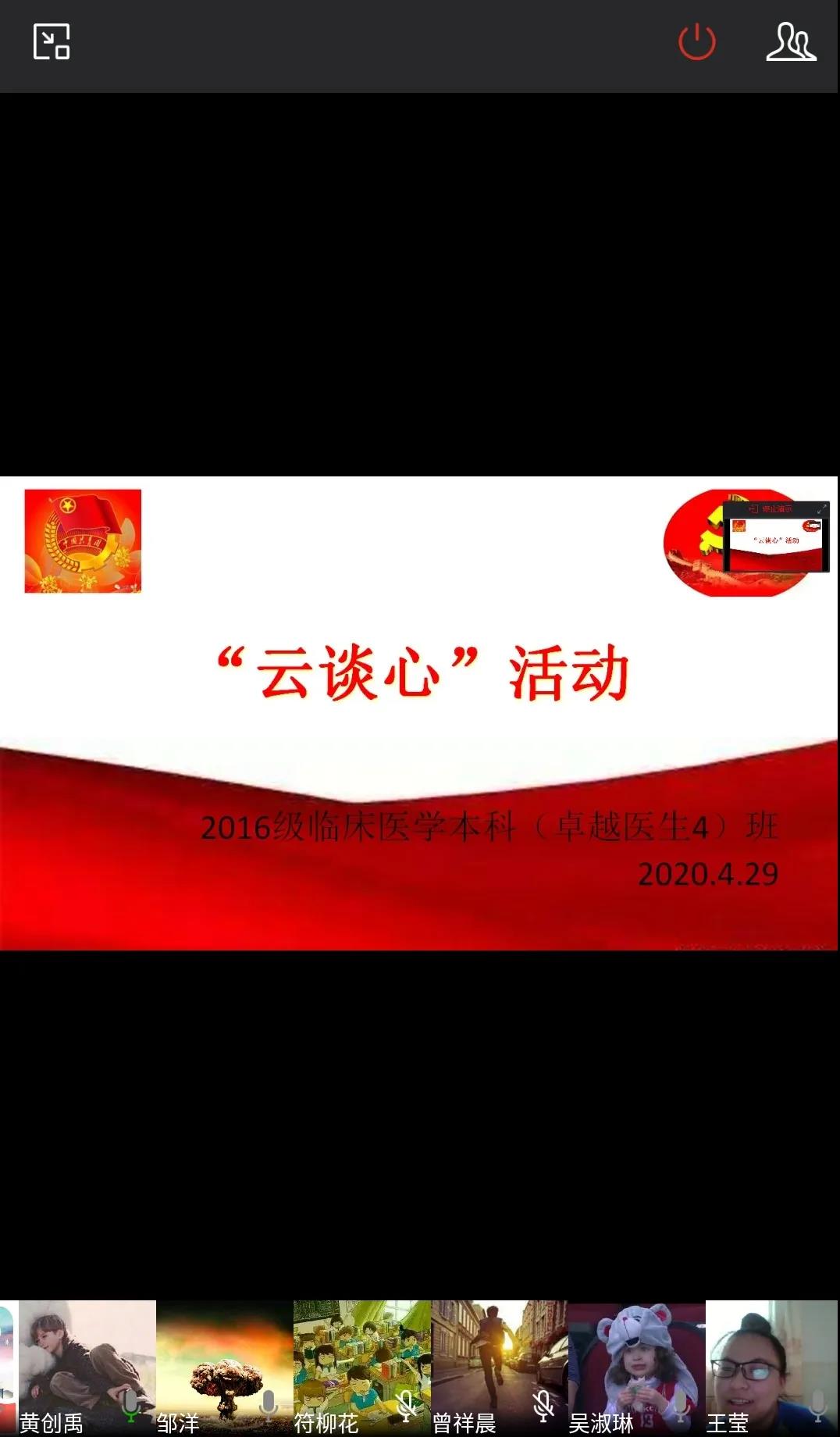 为了了解疫情期间团员青年的思想动向,顺利开展“三会两制一课”,加强基层团组织的凝聚力,2020年4月23日起至5月1日,第一临床学院的各团支部,以互联网为桥梁,通过“云谈心”的形式,共同展开一场“常汇报,多交流”的谈心活动。