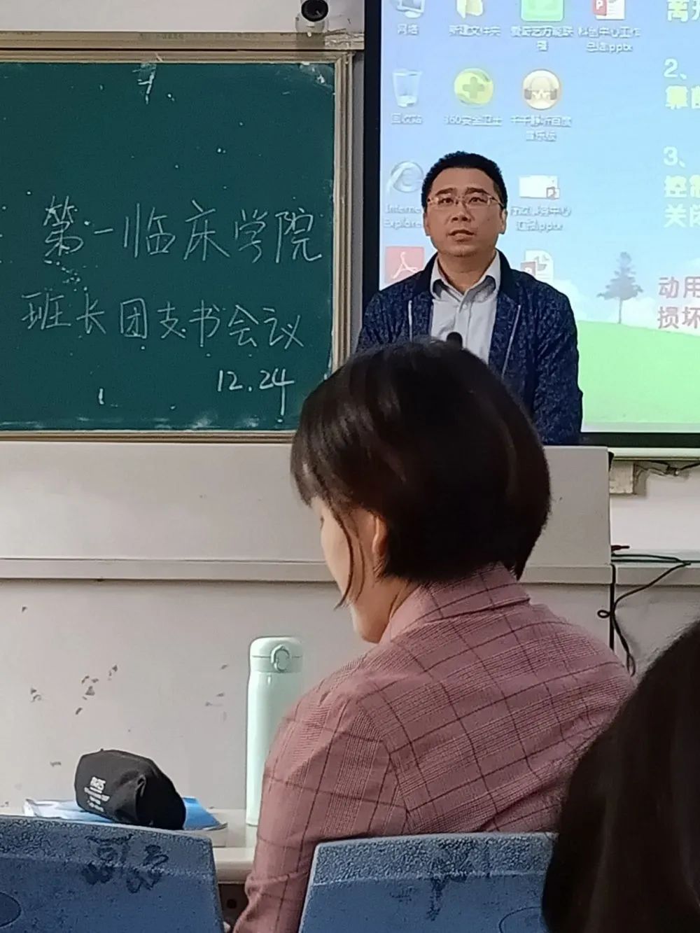 为了总结经验,规划下阶段工作并让班干部更好的了解工作内容,我院于2020年12月24日在四教104教室举行了本学期第四次班长团支书会议。该会议由第一临床学院学生行政事务中心吕开荣主任主持,我院张万科书记、宋融老师、于佳岐老师、焦江博老师、各班班长和团支书及七大组织部分人员参加会议。