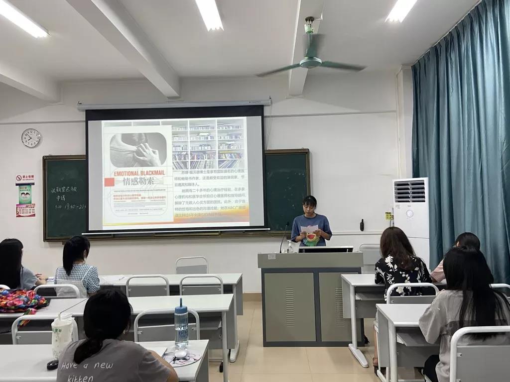 第一小组陈洁妹同学分享影响其恋爱观的书籍《失乐园》,向同学介绍了爱的深沉与凝重。
