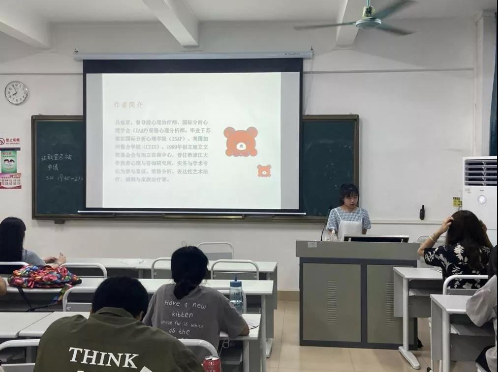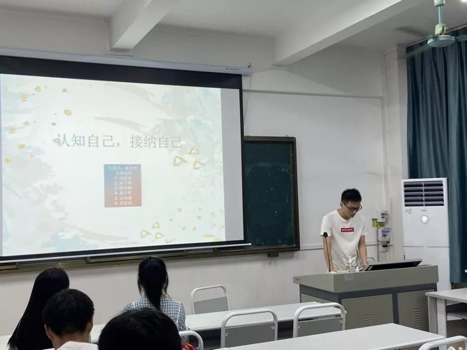 本次读书分享会共有39位同学报名参加,由19应心的陈洁妹同学主持,两个班级成员以小组为单位,通过PPT分享阅读有关心理书籍的心得体会。
