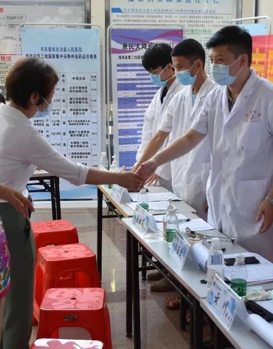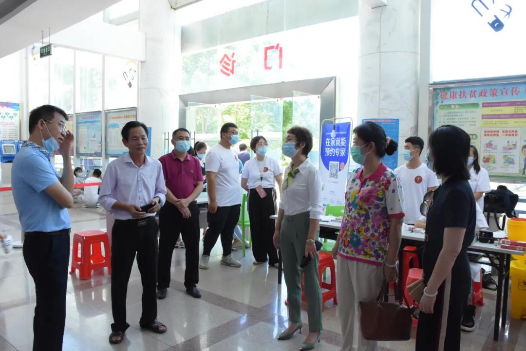 上午9:50海南医学院副校长张彩虹,学生工作处处长邝家旺,校团委书记曾梅,管理学院党委书记梁昌联,第一临床学院党委书记冯琼,第一临床学院党委副书记张万科,热带医学与检验医学院党委副书记、海南医学院驻番豆村村书记王基鸿,校团委老师林仕芬等莅临乐东县人民医院义诊现场视察我们的义诊工作,并与服务队队员亲切交谈,表达了学校对我们的三下乡实践团队工作的认可和支持,同时也提出我们的不足之处,及时改正。