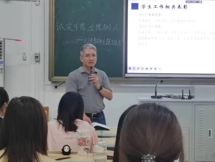 为深入贯彻落实“立德树人”根本任务,提升班级学风、班风建设,22级精神医学专业本科班于2023年6月5日开展“诚实守信,立德树人”主题班会。本次班会在6月5日下午15:30,第三教学楼103教室准时举行,参会人员包括第一临床学院党委副书记陈用成、第一临床学院辅导员吴靓老师以及22精神医学全体同学。