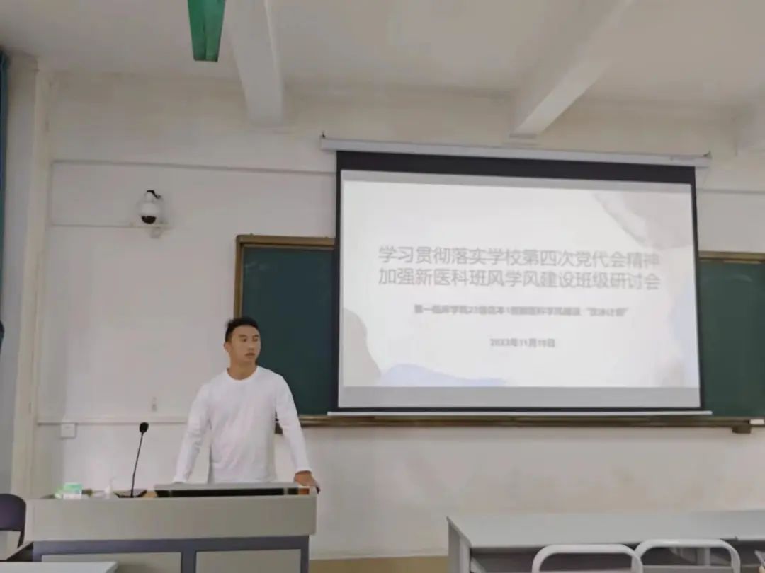 11月19日,第一临床学院23临本一班组织开展新医科班学风建设班级研讨会,师生围绕如何学习贯彻落实学校第四次党代会精神,加强学风建设,营造良好育人环境,提升人才培养质量展开讨论。