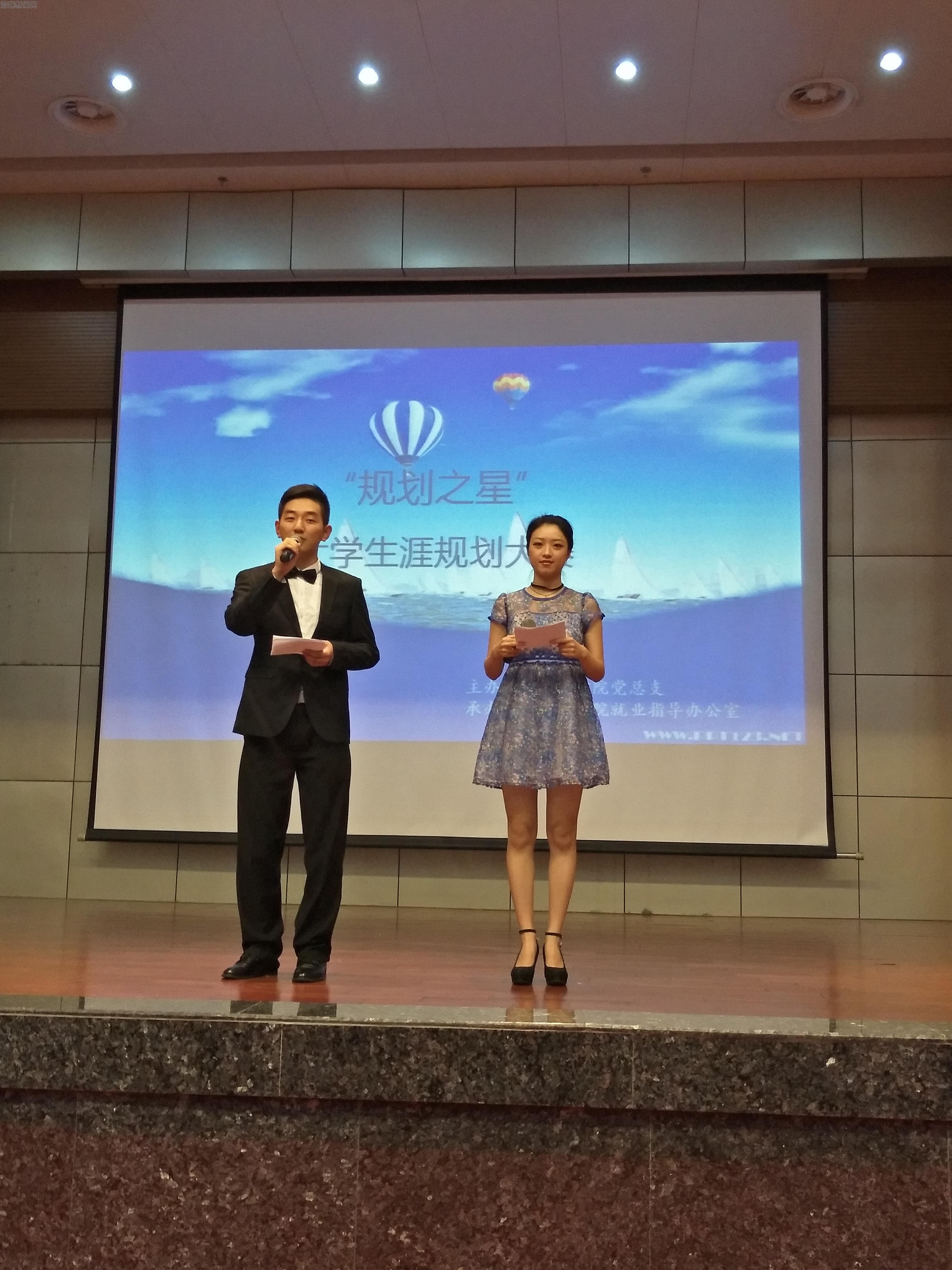 决赛上半场是PPT展示、主题演讲及评委提问,下半场是速问速答,选手随机抽题并答题。经过激烈的角逐,获得此次大学生涯规划大赛“规划之星”荣誉的选手分别是:吕雪雪、陈钟权、赵训晓、董白雪、周英萍、杜齐建。最后,余伟新老师进行了深入、透彻的点评,希望同学们在进行规划的时候,要胸怀未来、立足现实。