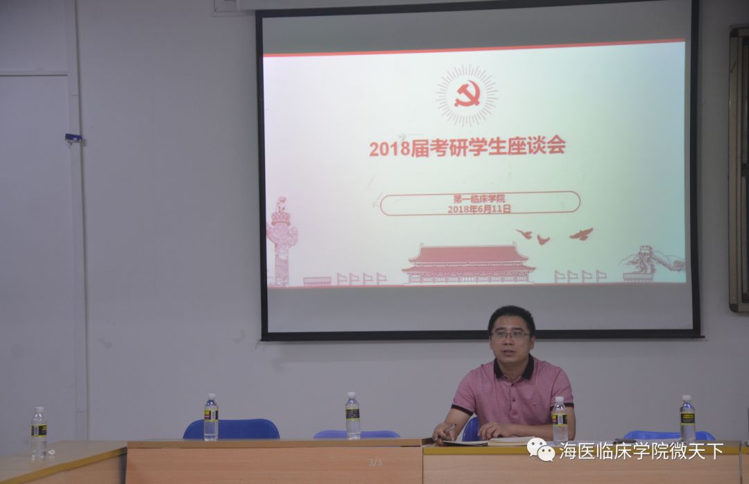 为加强学生对考研知识和经验的了解,营造积极向上的学风,解决同学们在备考过程中遇到的问题,拓宽我院学生的就业途径,我院于6月12日下午在4-208隆重举行了考研学生座谈会。参加此次座谈会的有第一临床学院党委副书记张万科、招生就业办公室主任陈彬彬老师、辅导员董慧丹老师及18届考研成功的学生,同时座谈会还邀请了非毕业班的学习委员参与。