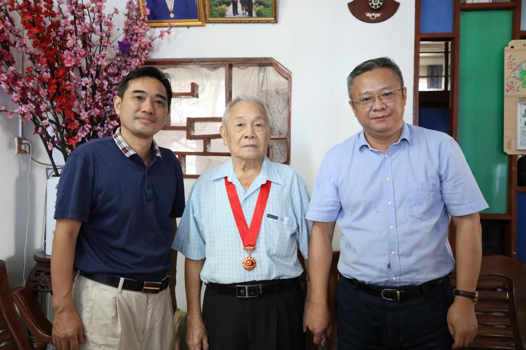 庆祝中国共产党成立100周年之际,根据省委组织部《关于协助做好“七一”前夕走访慰问老干部活动的通知》(琼老通[2021]10号)文件精神,在“七一”前夕,taptap点点党委副书记、校长杨俊等校领导分别走访慰问符志雄、陈萍、陈岳曼、郑书民、黄逸民等5位离休老干部,悉心了解他们的身体健康状况和生活、医疗待遇等情况,同他们开展轻松活泼的思想交流与沟通,感谢老同志为学校发展打下坚实的基础,做出的贡献,希望他们紧跟时代发展的脉搏,始终保持“政治坚定、思想常新、豪情满怀”的心态,继续关心和支持学校的发展建言献策,助力新时代海南自由贸易港建设的健康发展。校领导分别给老同志们送去节日慰问金和慰问品,同时颁发“光荣在党50年”纪念章,转达省委省政府及学校党委对老同志的关心关爱和问候。离休老干部们感谢组织对他们的关心和爱护,让他们有荣誉感、有幸福感。