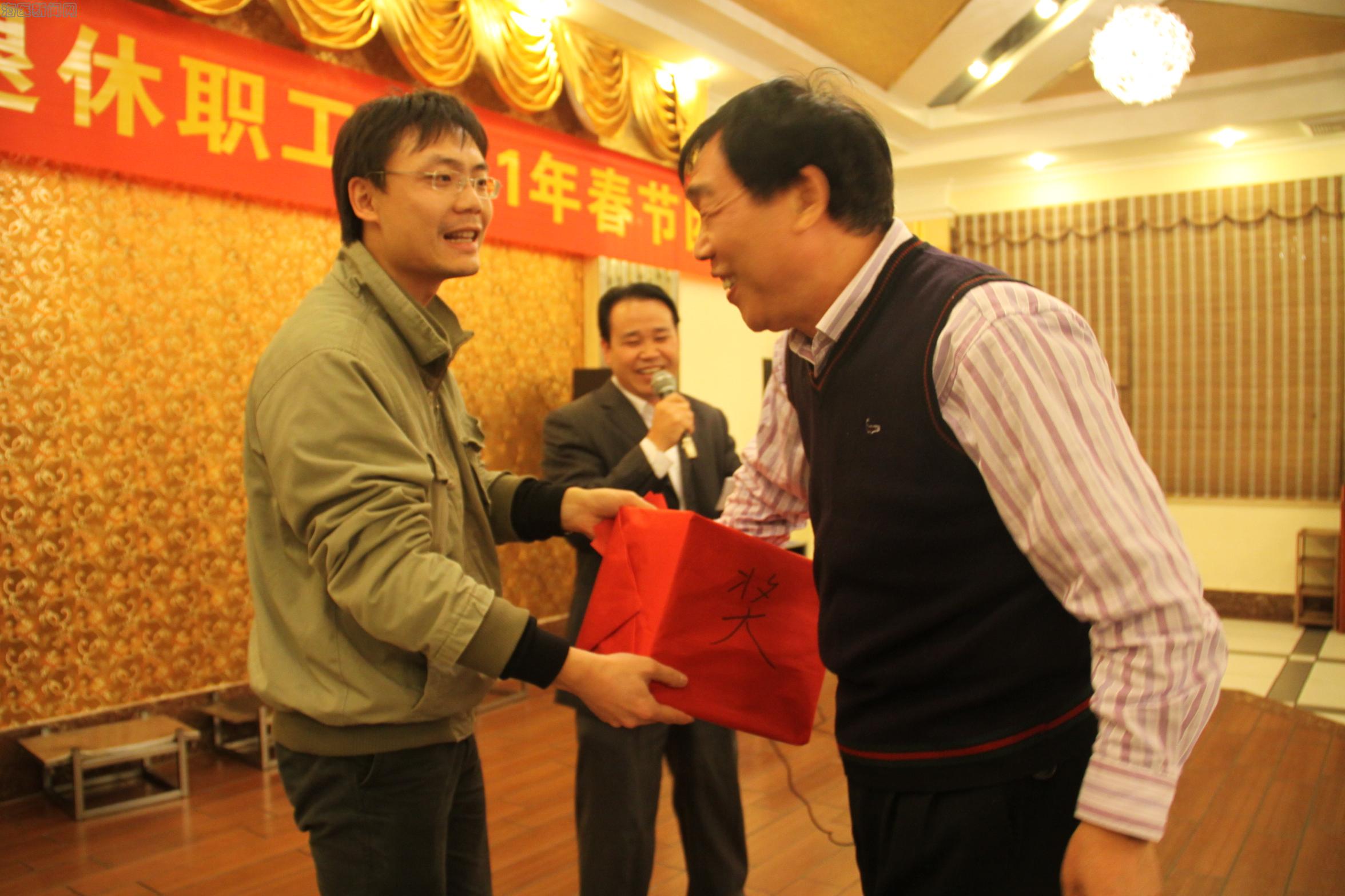 组织者在团拜会期间还为老同志们发放了新年购物卡,并通过抽奖环节,把活动气氛推向了高潮。