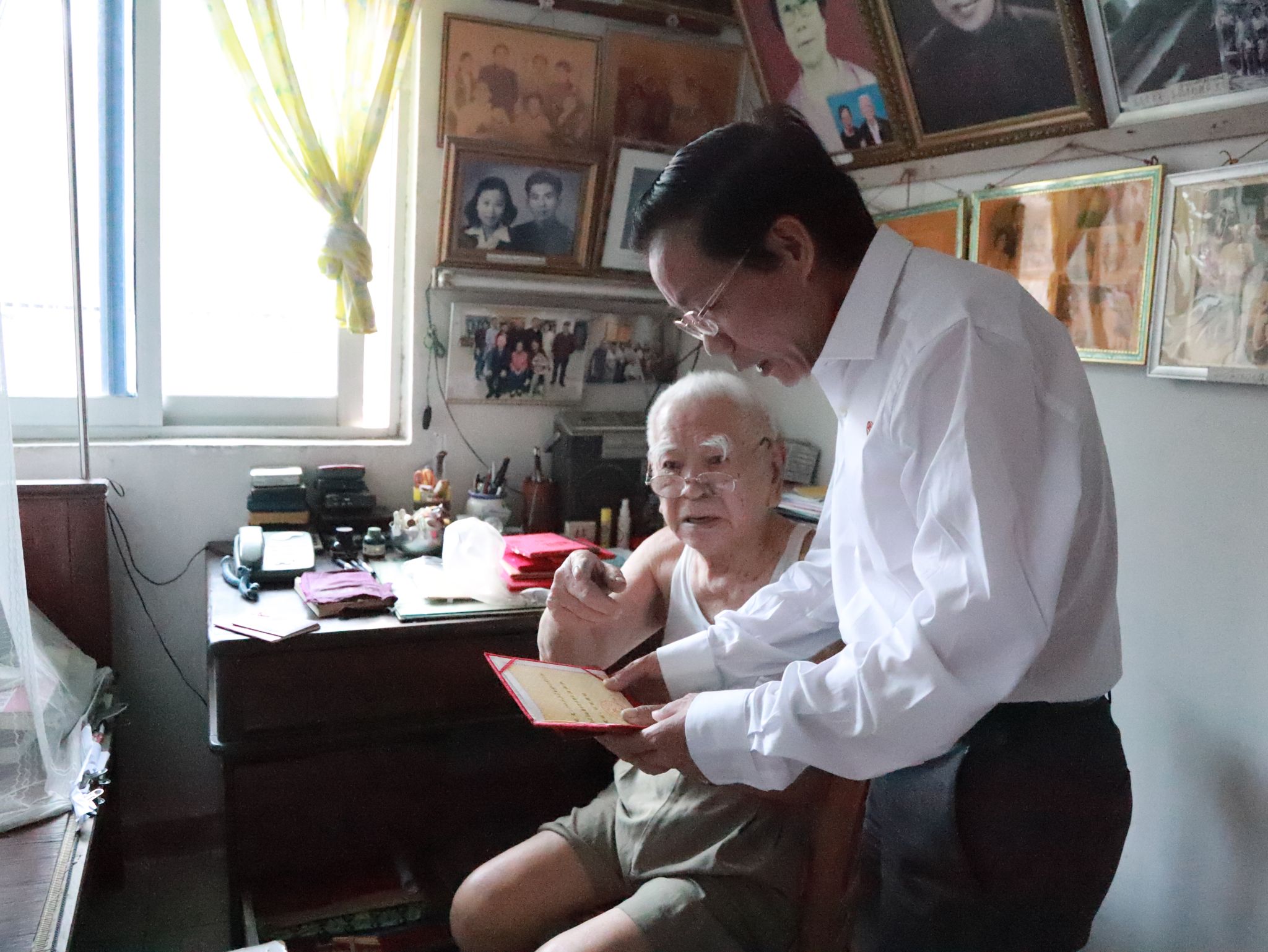 在密集调研学校各职能部门、了解学校各项工作的基本情况后,陈国强于10月8日至11日,抽出时间,先后走访慰问了部分在海口的老领导、老专家、老教授,如96岁高龄的琼崖抗日独立队队员、原海南医专党委副书记、离休干部符志雄先生,93岁的生理学家邓子夫教授,85岁的微生物学与免疫学家林碧瑚教授,从事中医针灸工作40个春秋的辜孔进教授,73岁的病理学专家、原校长焦解歌教授,72岁的原口腔医学院张治汉教授以及原校党委书记李永春、廖小平教授,原药学系党总支书记林连波教授,原副校长陈志斌教授、曾渝教授,全国优秀教师、医学影像学涂蓉教授等。他拉着他们的手,详细询问着生活细节,“现在身体情况如何?”“日常生活由谁照顾?”“子女情况如何?”“住这么高的楼层,平常上下楼买菜方便吗?”……反复叮嘱他们保重身体,就学校的历史和未来改革发展向他们问计问策,虚心听取意见和建议,并主动交换电话和微信,嘱咐他们随时可以联系他。