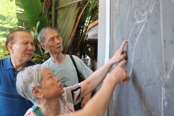 9.黄竹村老党员陈天章认真讲解解放海南战役决胜的革命故事
