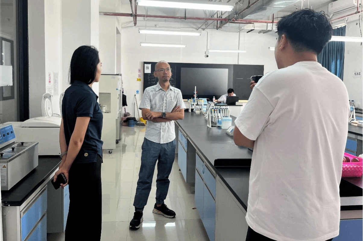 2024年10月24日上午,海南圣权置业有限公司代表刘宇、张舜尧一行来到基础医学与生命科学学院参观交流。学院就业工作负责人王咸寿、生物技术专业秘书王亚如带领来访人员参观了学院各教学实验室,详细介绍我院生物技术专业学生培养情况、专业特色等。