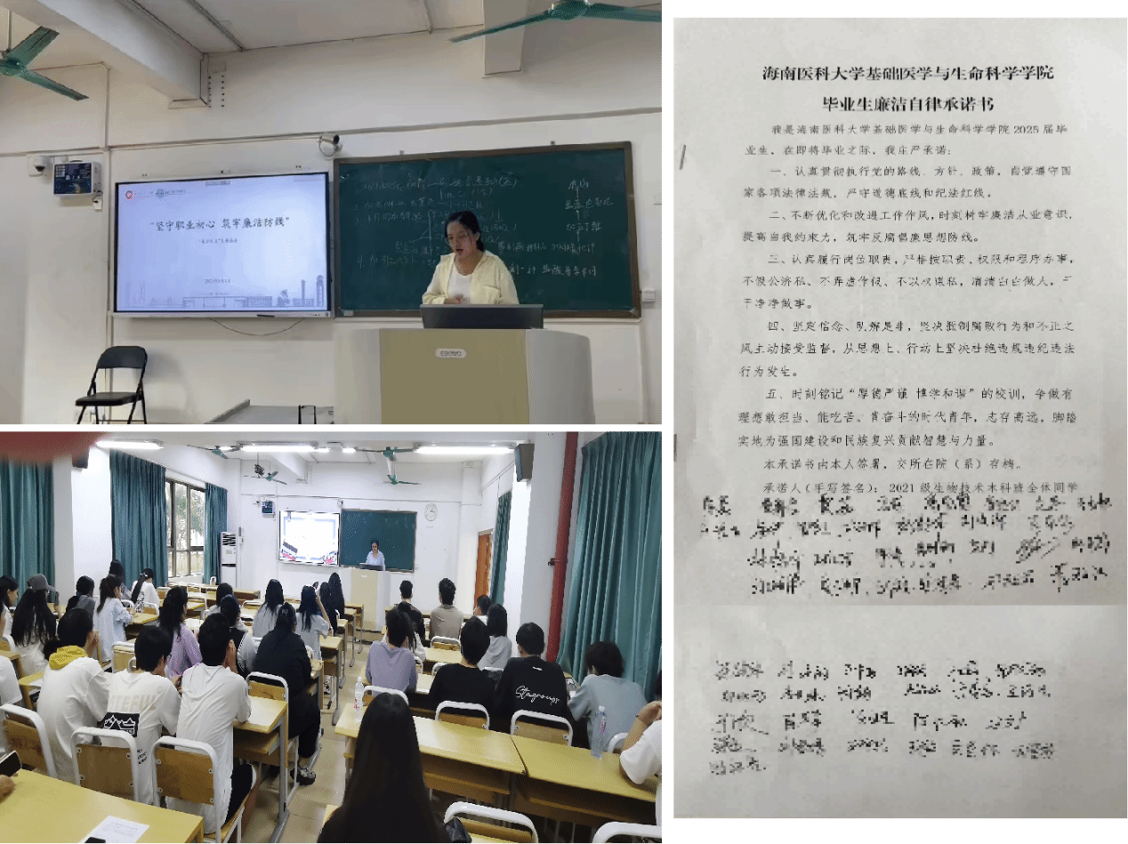 为助力毕业生们在职业生涯的起点上树立坚定的职业理想和恪守廉洁准则,同时确保毕业季的安全、文明与有序,基础医学与生命科学学院于5月22日及29日,为2025届生物技术本科毕业班精心组织了一系列以“廉洁就业暨文明安全离校”为主题的班会活动。