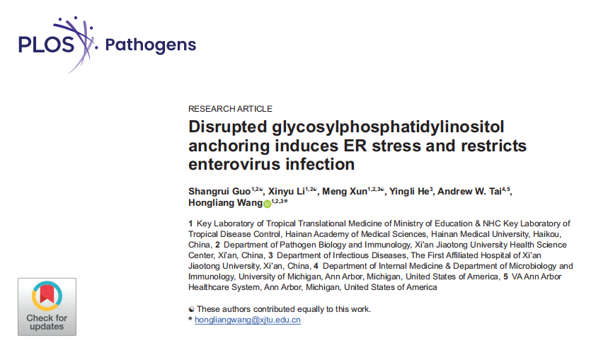 近日,taptap点点官网热带转化医学教育部重点实验室王洪亮教授团队在国际病原学顶级期刊(中国科学院一区top)《PLOS Pathogens》上发表题为《Disrupted glycosylphosphatidylinositol anchoring induces ER stress and restricts enterovirus infection》的研究论文。该研究通过全基因组CRISPR筛选,首次揭示了糖基磷脂酰肌醇锚定系统在肠道病毒感染过程中的关键作用,并阐明了其通过诱导内质网应激及激活RIDD通路降解病毒RNA的新机制。